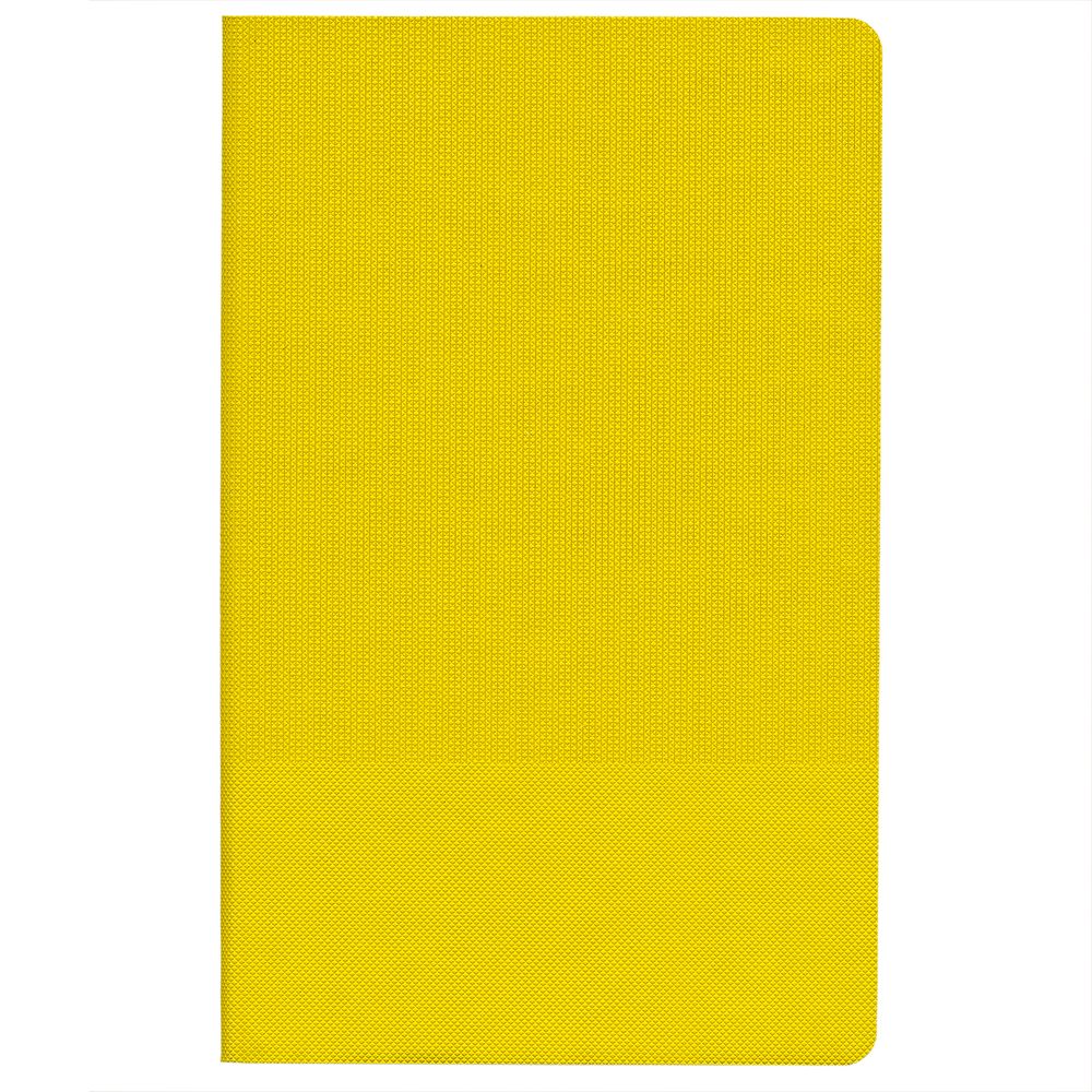 Ежедневник с гибкой обложкой, выполнен из материала Canyon, желтый КК, дополнен ляссе в цвет обложки. Блинтовое тиснение на обложке создает эффект вязаного полотна.