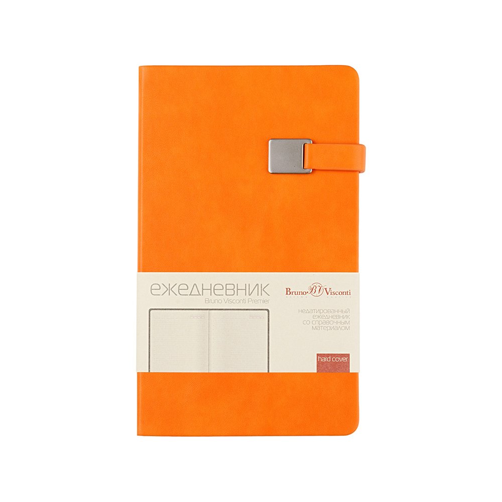 - Недатированный ежедневник Premier формата А5 (125х208 мм) от Bruno Visconti - удобный и функциональный в эксплуатации. Твердую обложку из высококачественной искусственной кожи дополняет металлический хлястик на магните. Ляссе в цвет обложки позволяет быстро найти нужную страницу. Блок в 272 страницы произведен из бежевой бумаги плотностью 70 г/кв.м и имеет раздел справочной информации на 19 страницах. Для удобства навигации все углы блока перфорированы, имеют скруглённую форму.