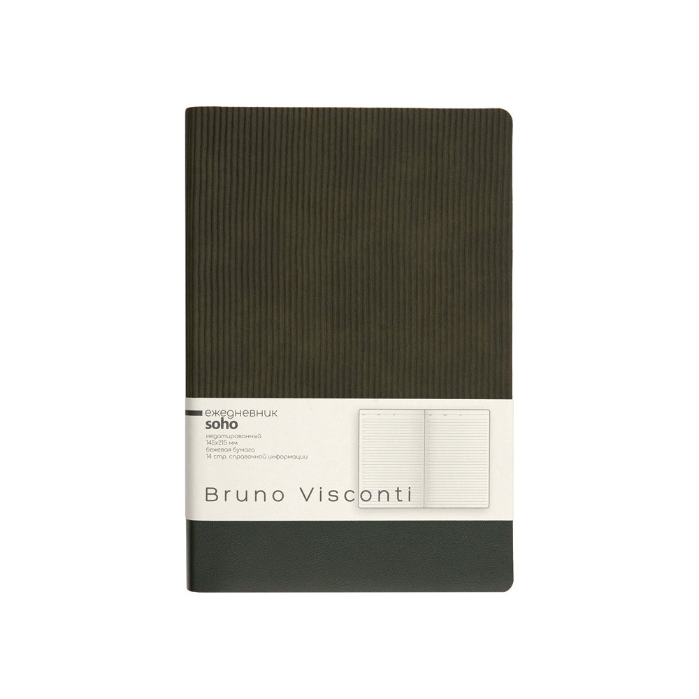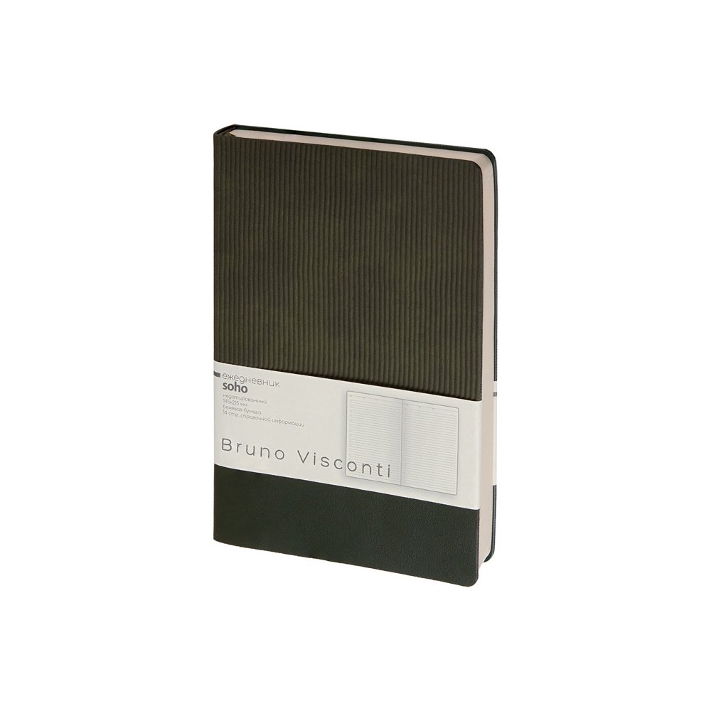 - Гибкая мягкая обложка с эффектом муара, тактильно приятная с рифленой фактурой – главное украшение недатированного ежедневника Soho ТМ Bruno Visconti. Ляссе в цвет обложки как легкое дополнение к строгому, но элегантному образу. Никаких дополнительных деталей, а сколько благородства. Ежедневник формата А5 имеет внутренний блок из 272 страниц. Блок изготовлен из бежевой бумаги плотностью 70 г/м2 и содержит: Покрытие soft touch придает обложке мягкость и создает приятные тактильные ощущения в работе с ежедневником. • раздел для планирования с линовкой и указанием времени с интервалом в один час; • страница для персональных данных; • страницы для планирования рабочих и личных дел по месяцам; • 10 страниц оригинальной справочной информации (вино и еда, мода, драгоценности, как выбирать подарок, методы борьбы со стрессом).