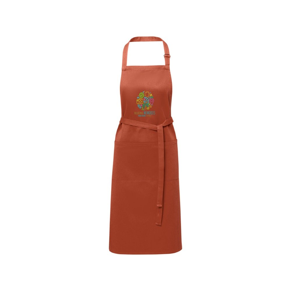 - Защитить красивую одежду во время приготовления пищи легко благодаря фартуку Andrea. Фартук изготовлен из саржи плотностью 240 г/м² (65 % полиэстер и 35 % хлопок), что делает его плотным и прочным, но при этом мягким и удобным при ношении. Два передних кармана предлагают быстрый и простой способ хранения кухонных принадлежностей. Фартук регулируется с помощью пряжки на шее и завязок на спине, что делает его универсальным для всех размеров.