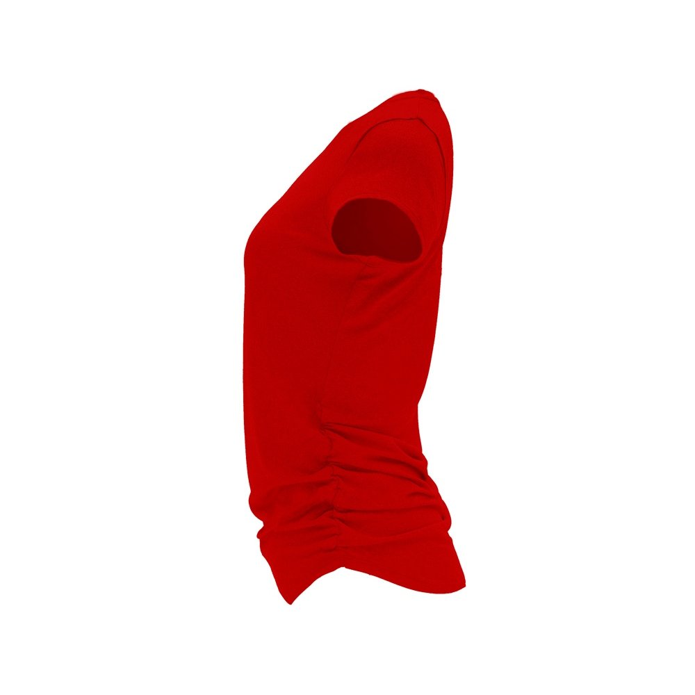 - Спортивная футболка с коротким рукавом для женщин. Полотно из полиэстера на ощупь напоминающее хлопок. Круглый вырез горловины обработан бейкой из того же полотна. Эластичная драпировка по боковым швам для лучшей посадки по фигуре. Узкий силуэт.