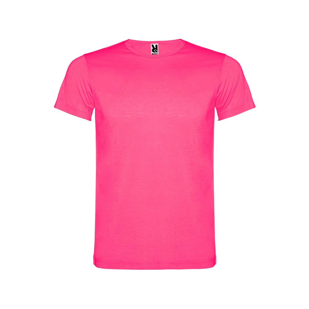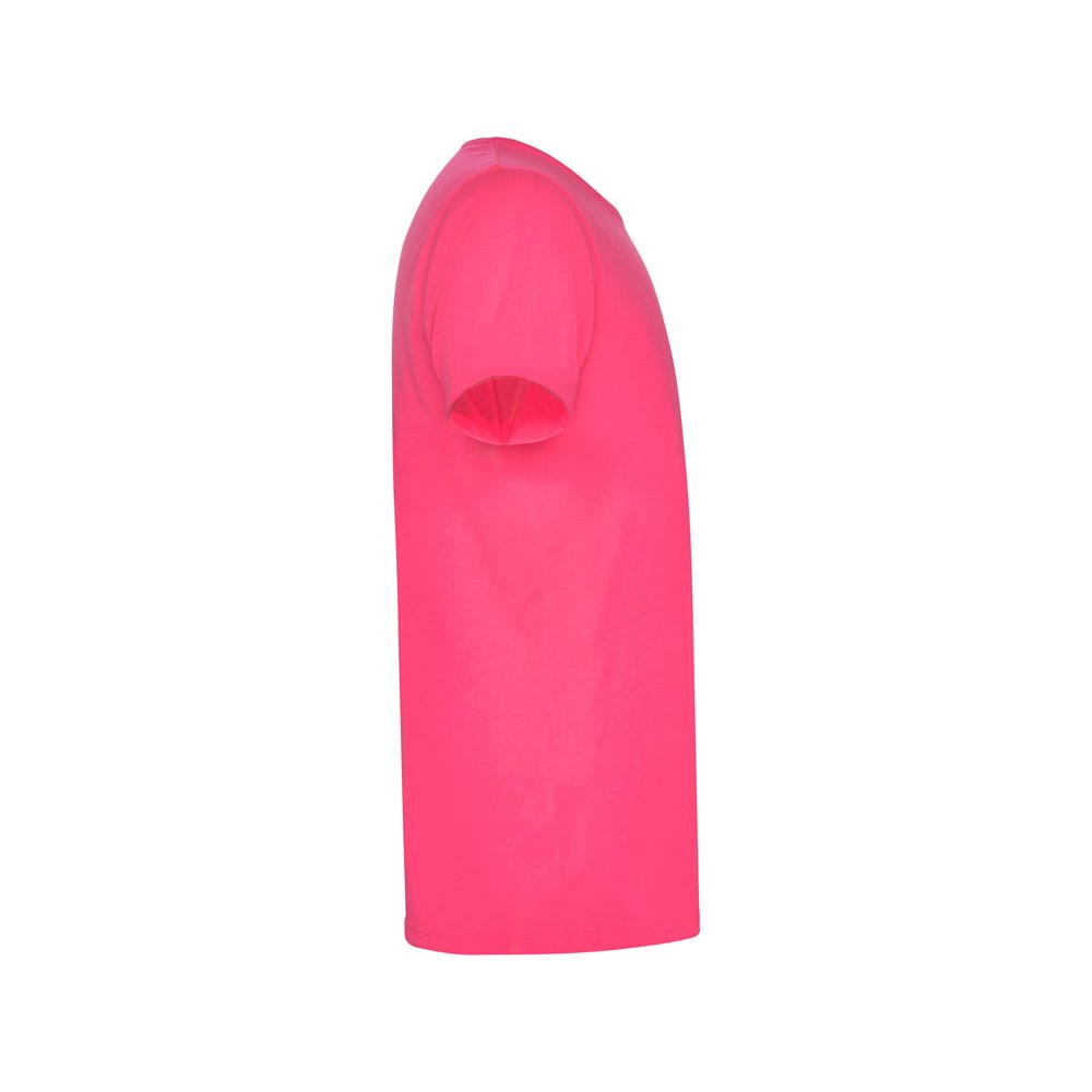 - Футболка с коротким рукавом и круглым вырезом горловины. Модель в неоновых цветах выполнена из полиэстера, на ощупь напоминающего хлопок.