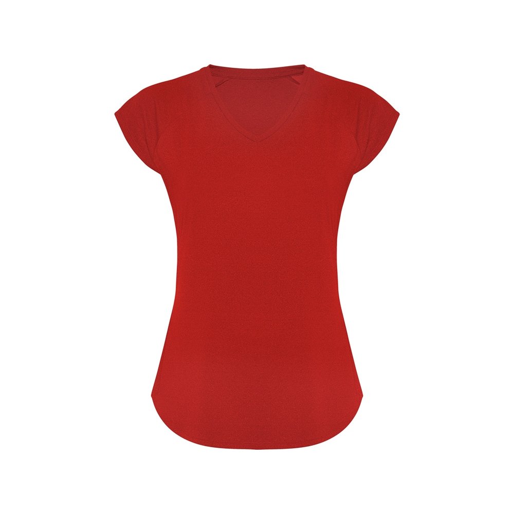- Спортивная женская футболка с коротким рукавом реглан. Вырез горловины V. Полотно из полиэстера на ощупь напоминающее хлопок. Приталенный силуэт.