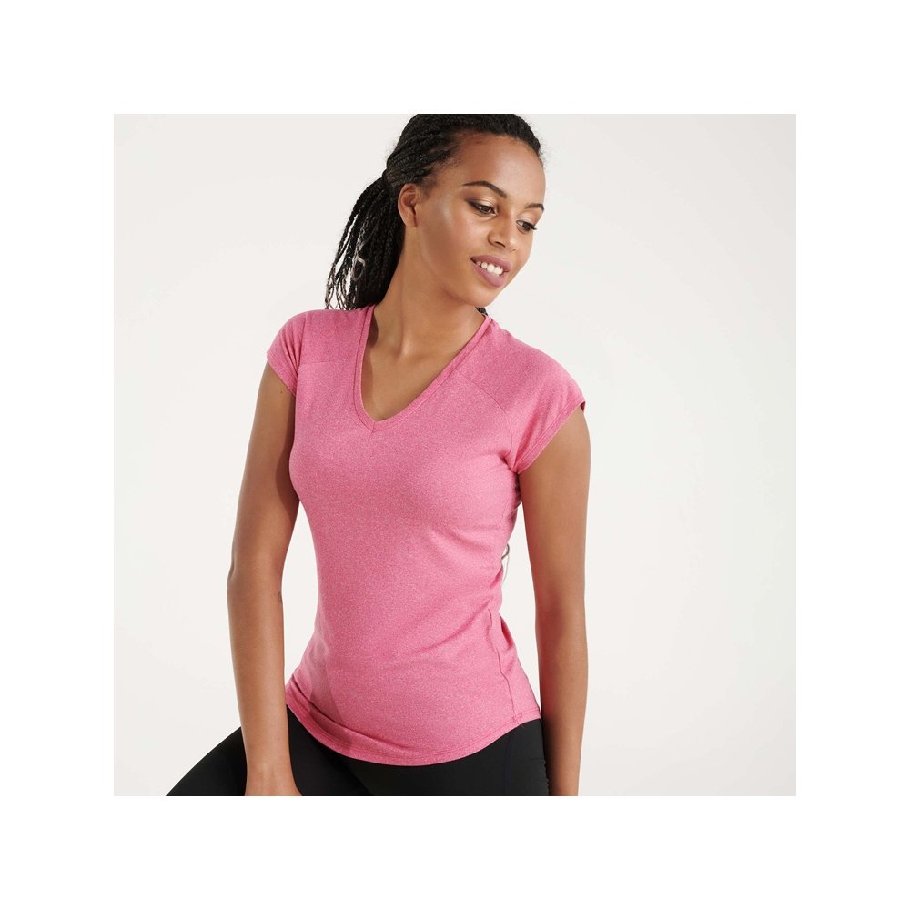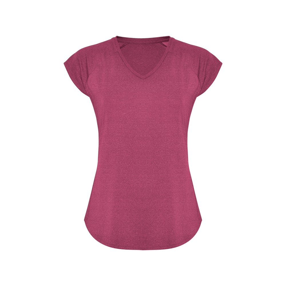 - Спортивная женская футболка с коротким рукавом реглан. Вырез горловины V. Полотно из полиэстера на ощупь напоминающее хлопок. Приталенный силуэт.