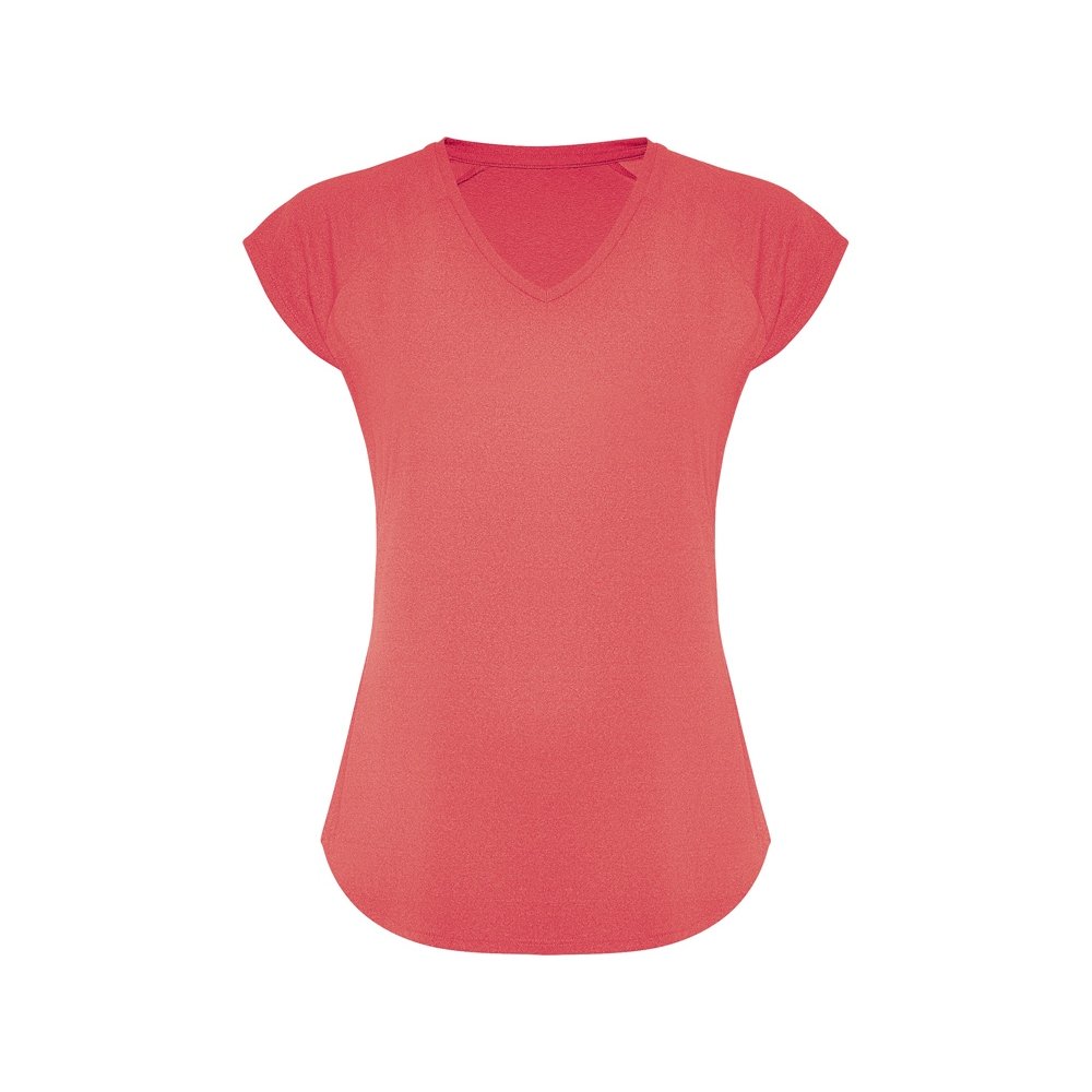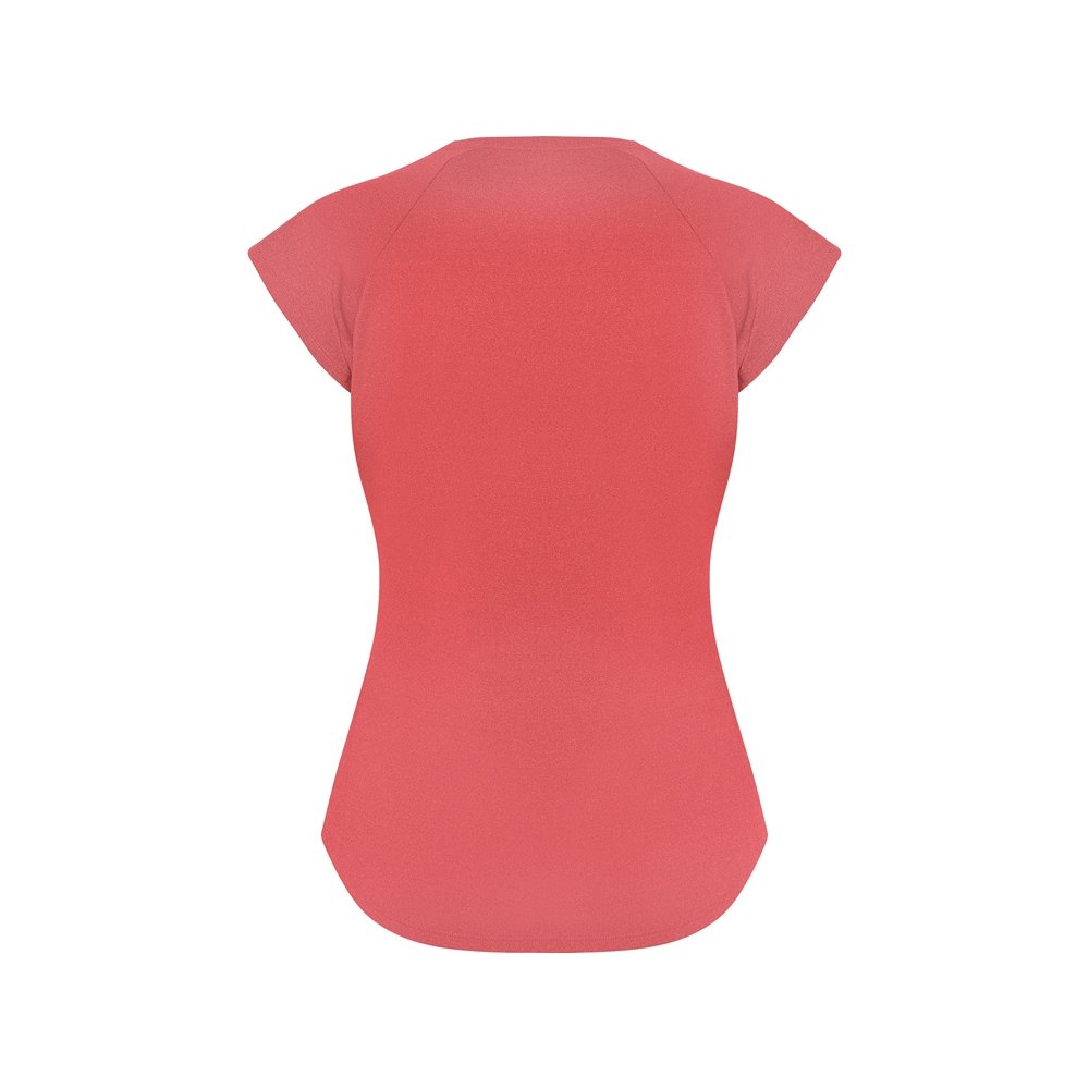 - Спортивная женская футболка с коротким рукавом реглан. Вырез горловины V. Полотно из полиэстера на ощупь напоминающее хлопок. Приталенный силуэт.