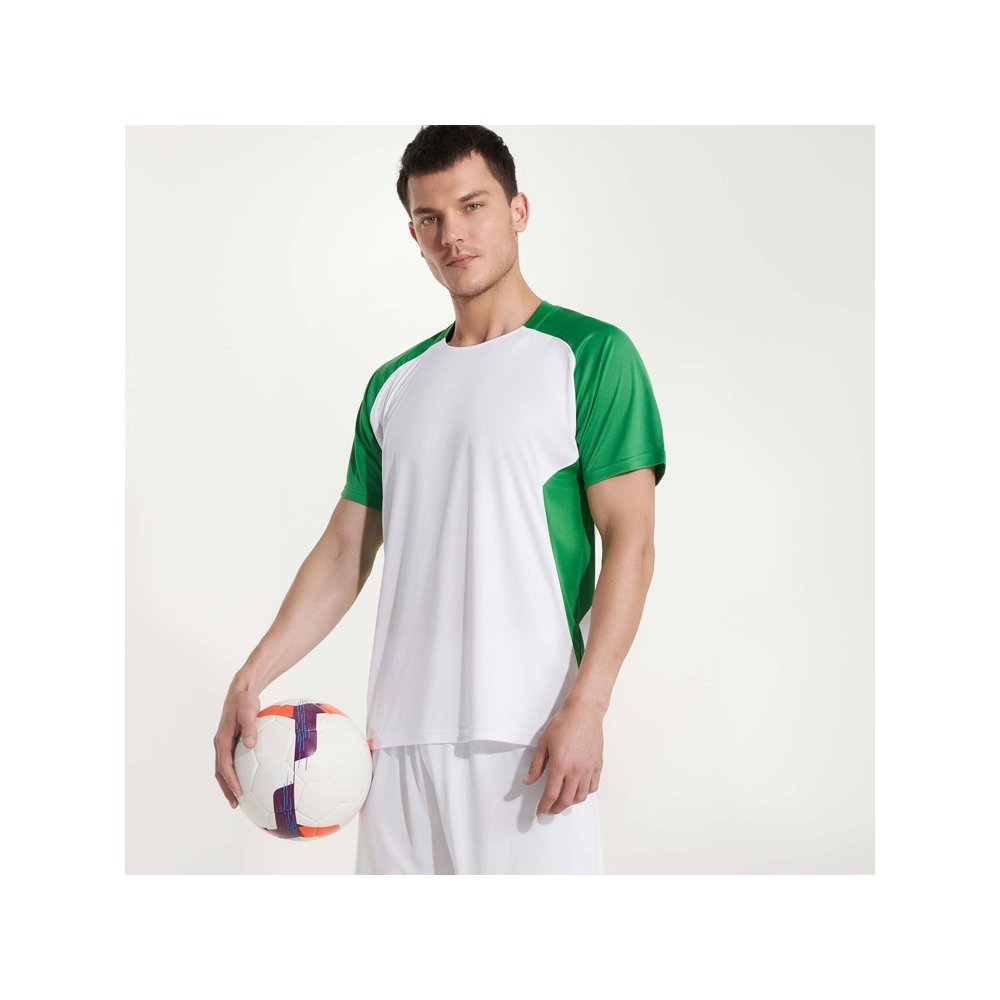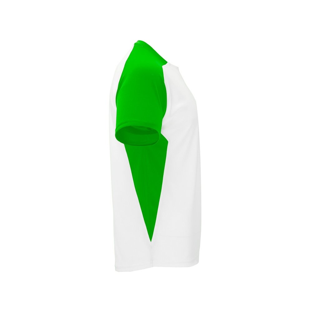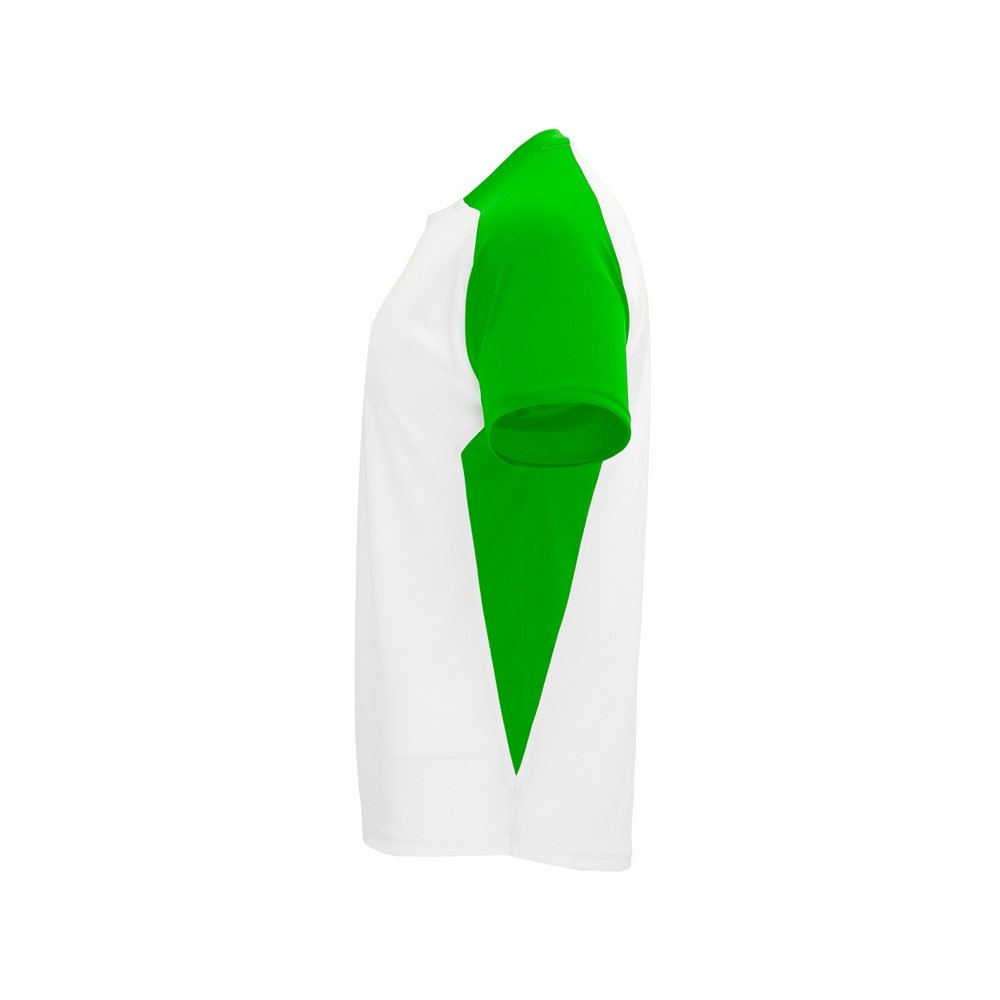 - Спортивная футболка с коротким рукавом реглан. Круглый вырез горловины. Контрастные рукава и боковые вставки.