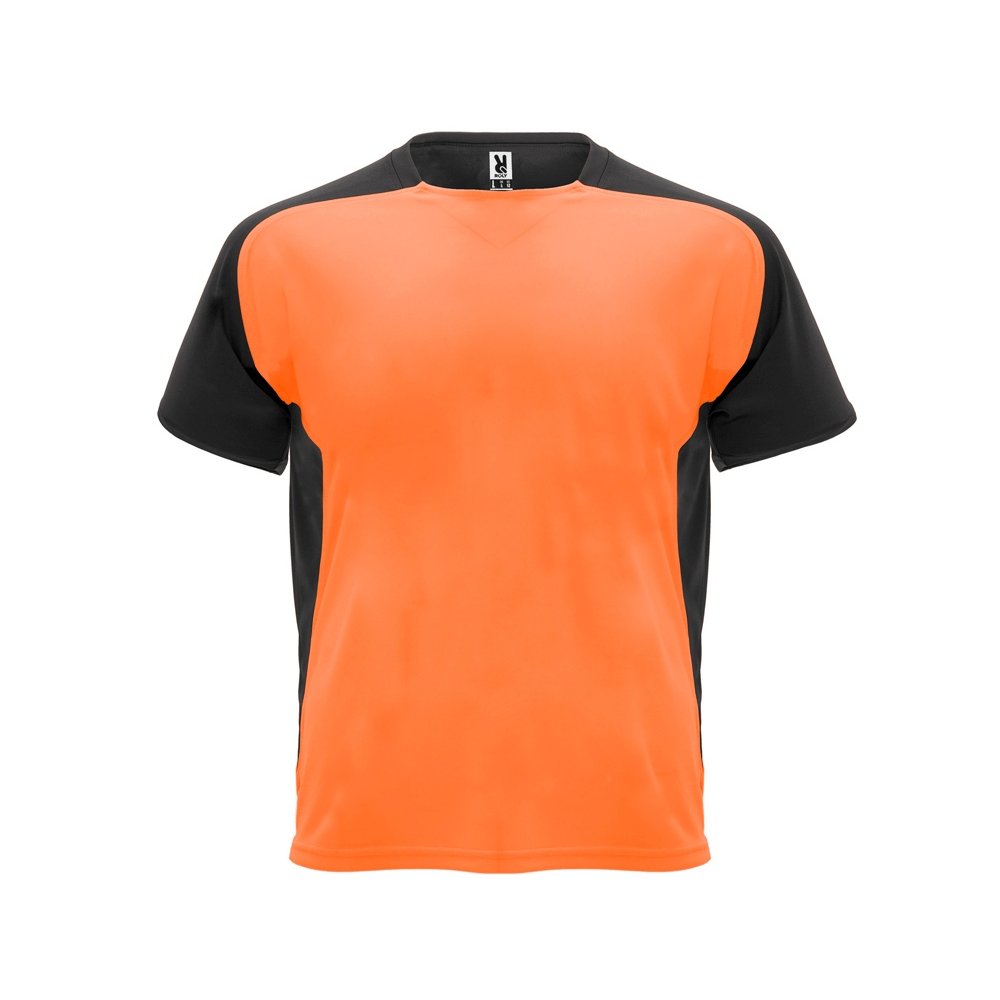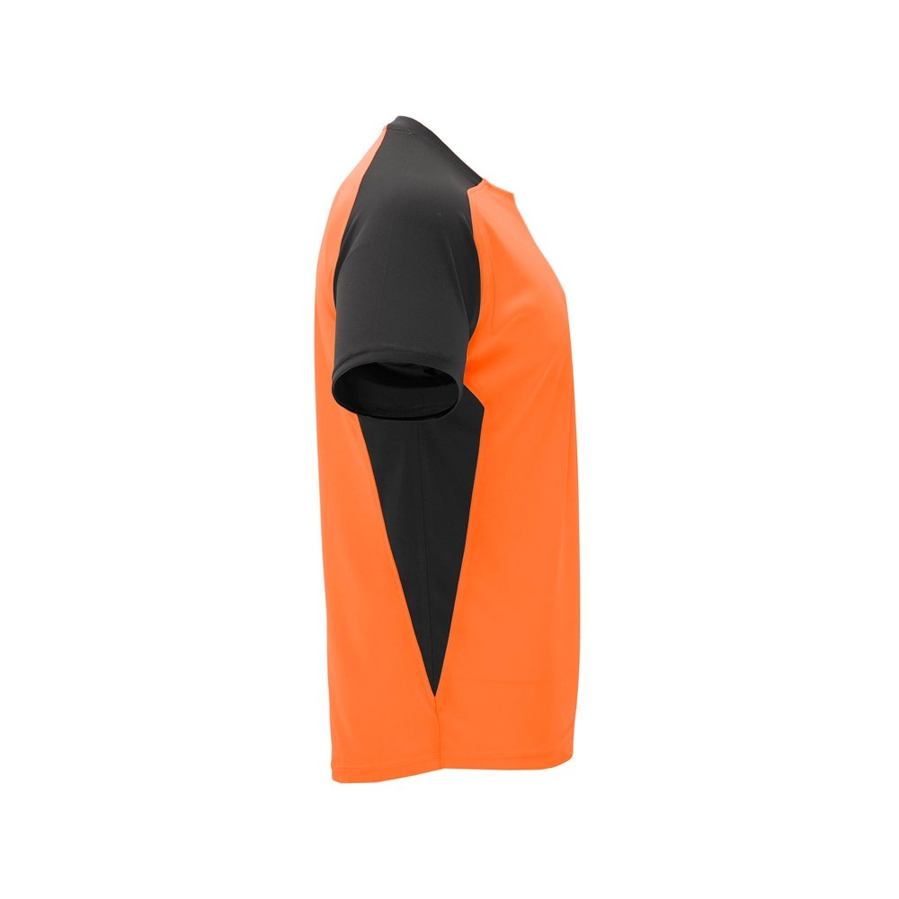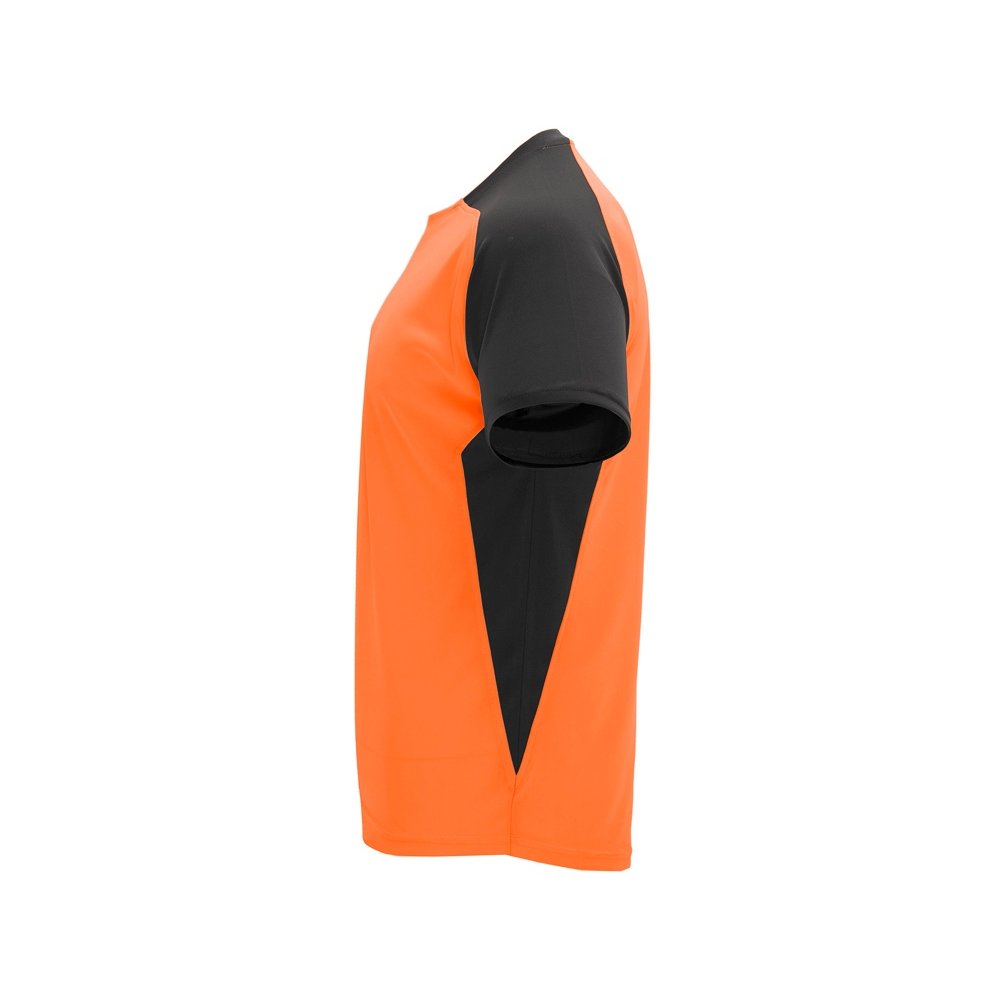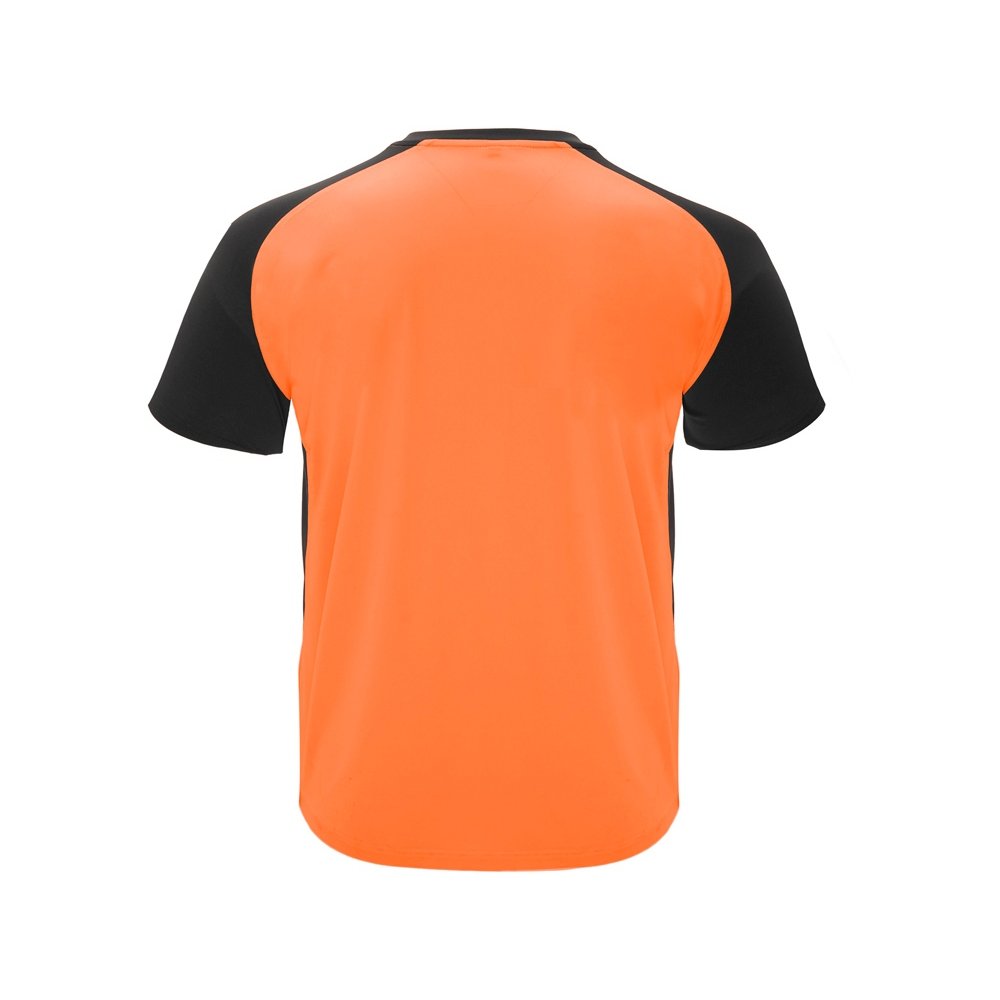 - Спортивная футболка с коротким рукавом реглан. Круглый вырез горловины. Контрастные рукава и боковые вставки.