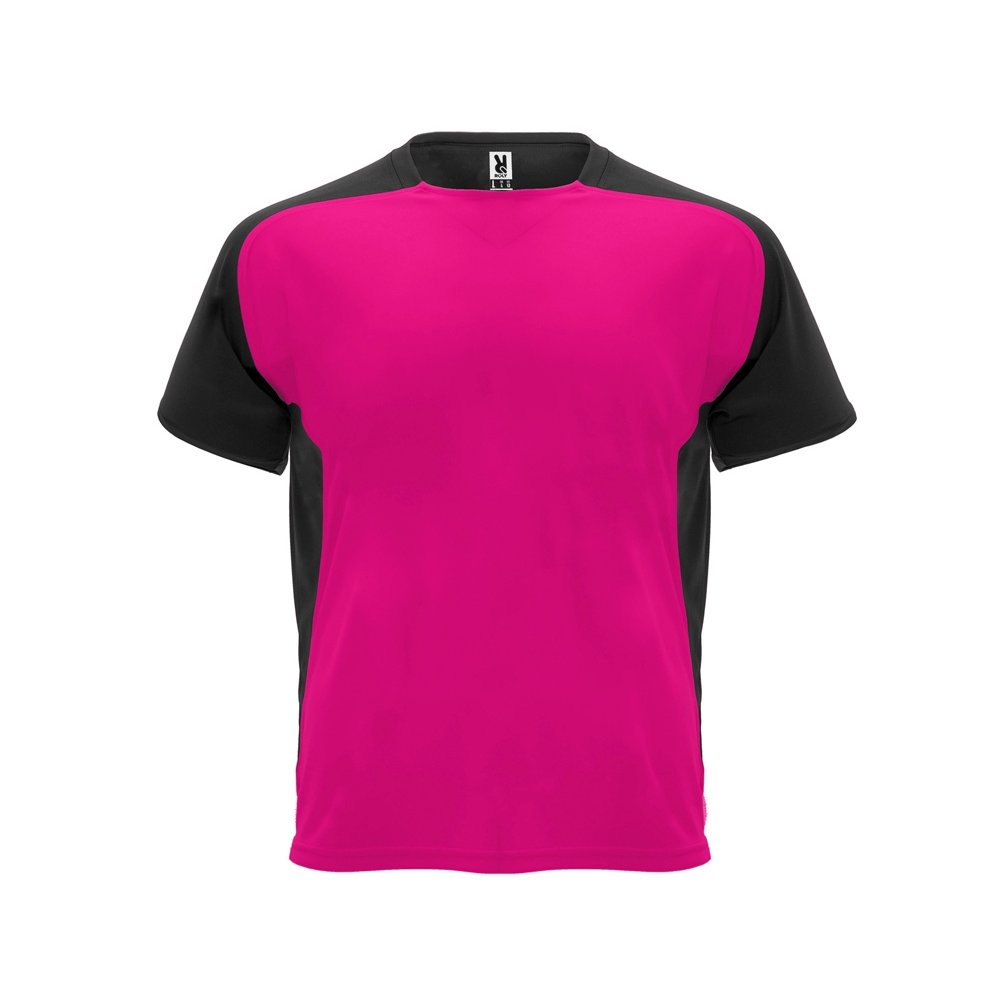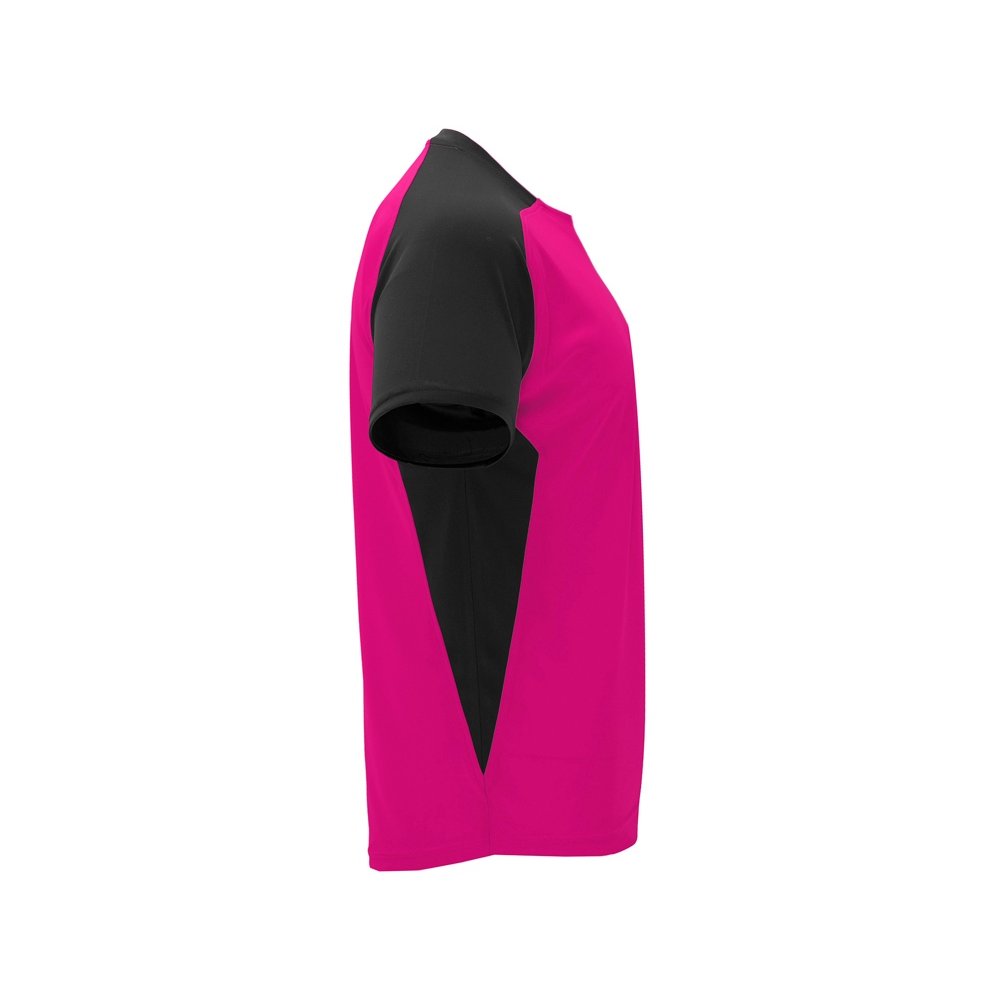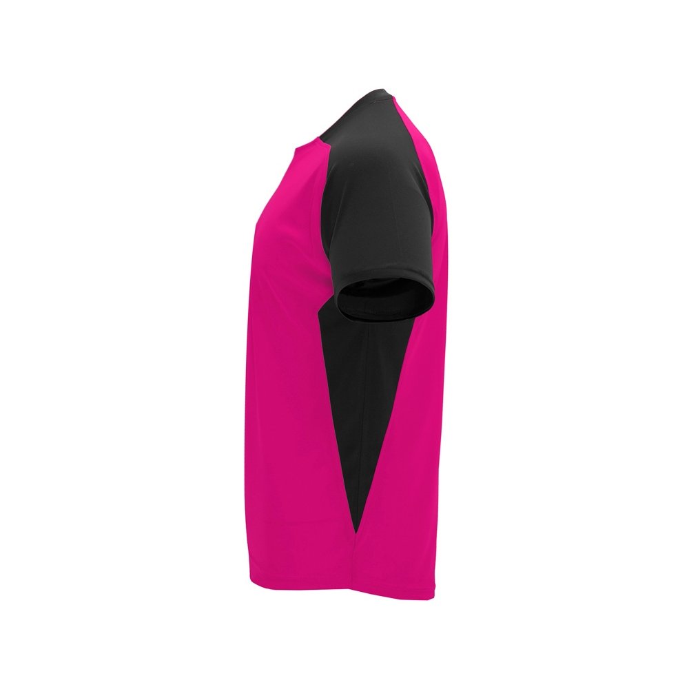 - Спортивная футболка с коротким рукавом реглан. Круглый вырез горловины. Контрастные рукава и боковые вставки.