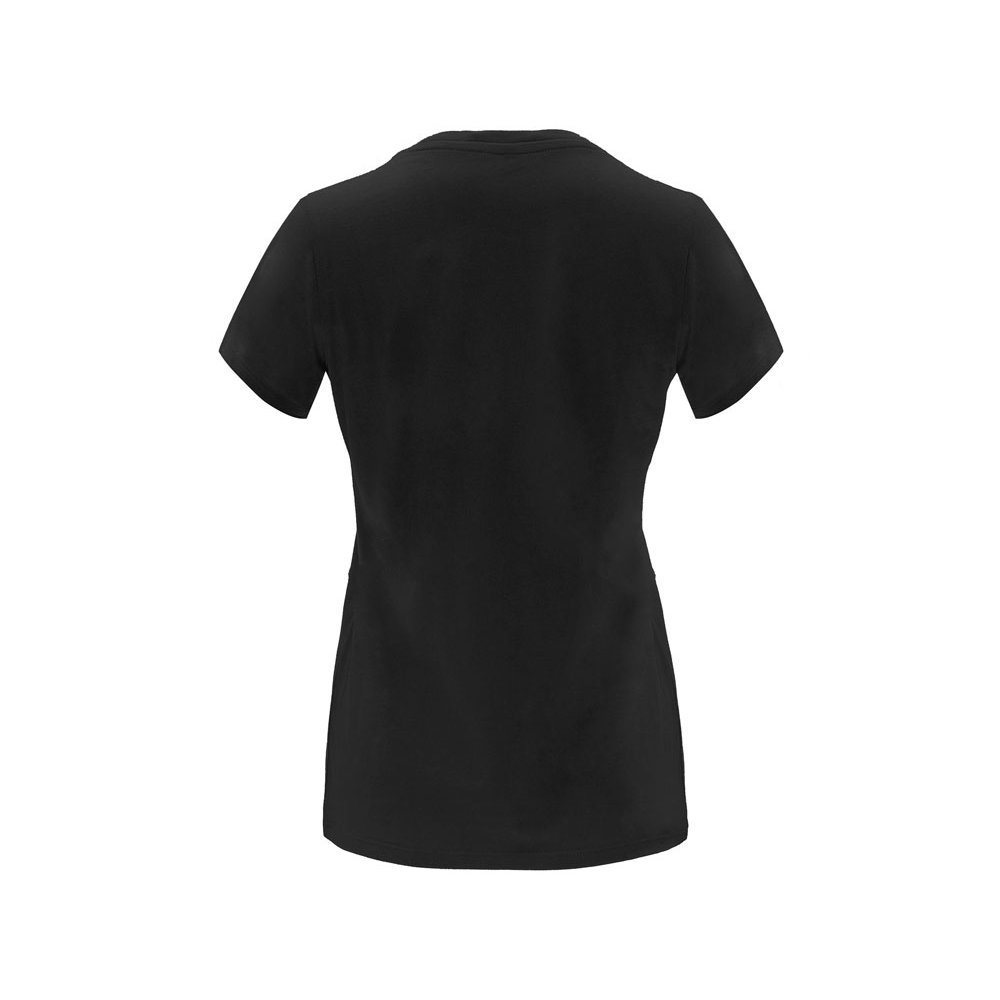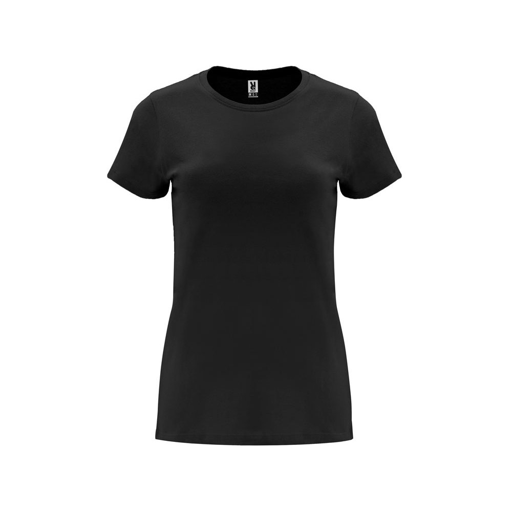 - Женская приталенная футболка. Круглый вырез горловины обработан рибом 1х1. Шов горловины укреплен тесьмой.