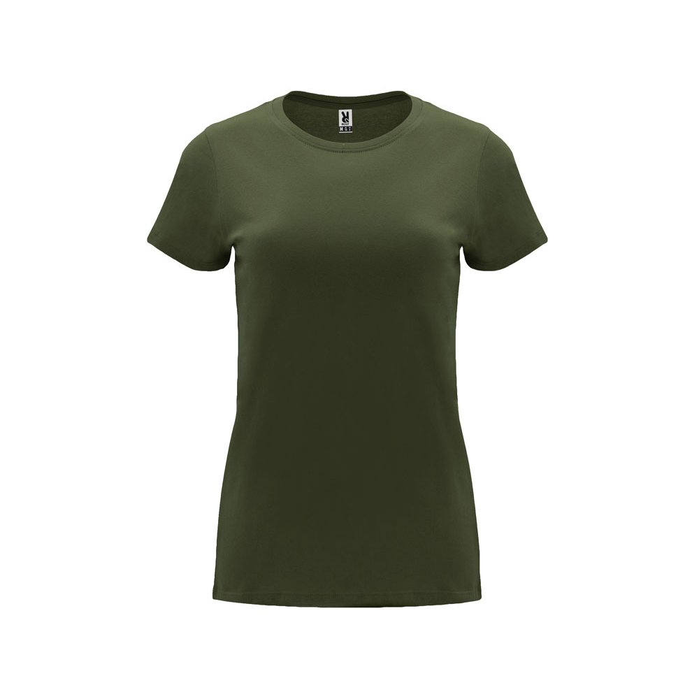 - Женская приталенная футболка. Круглый вырез горловины обработан рибом 1х1. Шов горловины укреплен тесьмой.