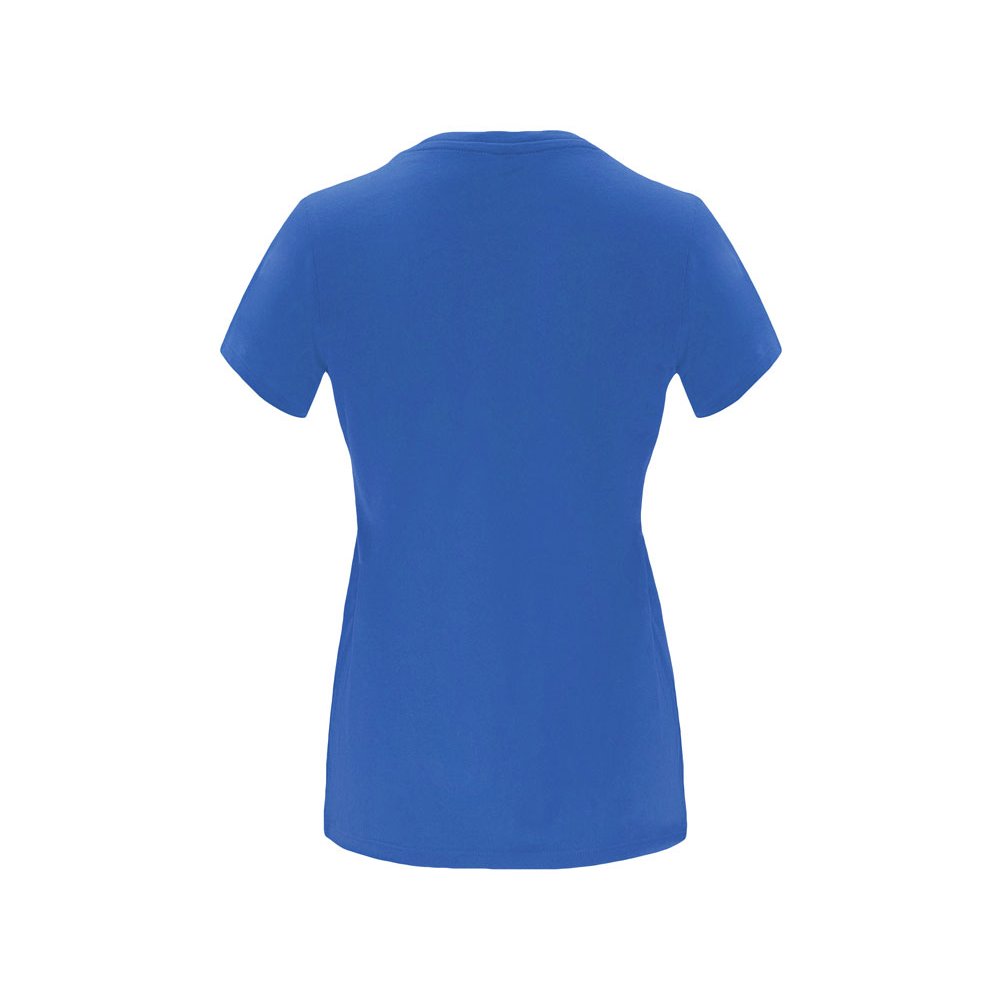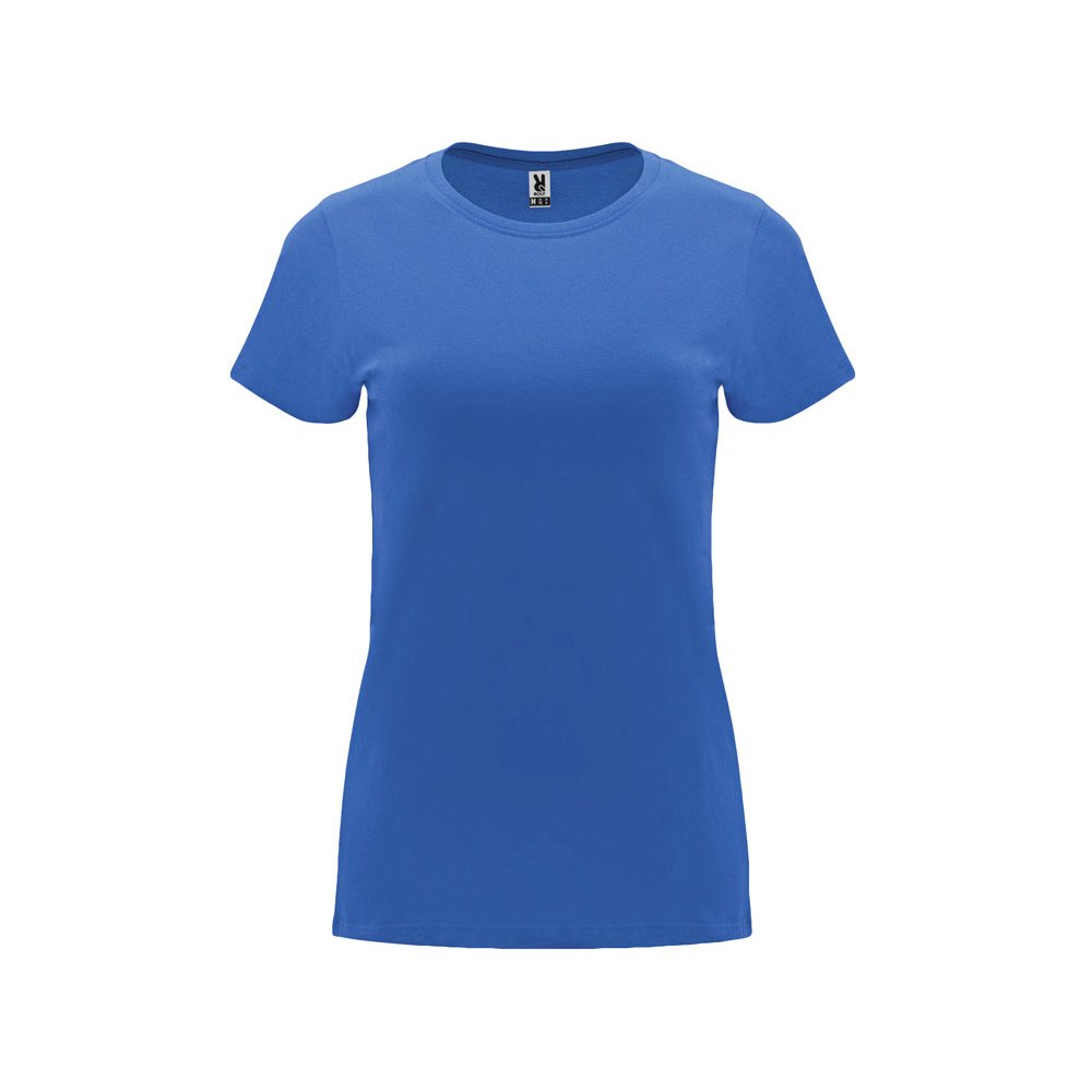 - Женская приталенная футболка. Круглый вырез горловины обработан рибом 1х1. Шов горловины укреплен тесьмой.
