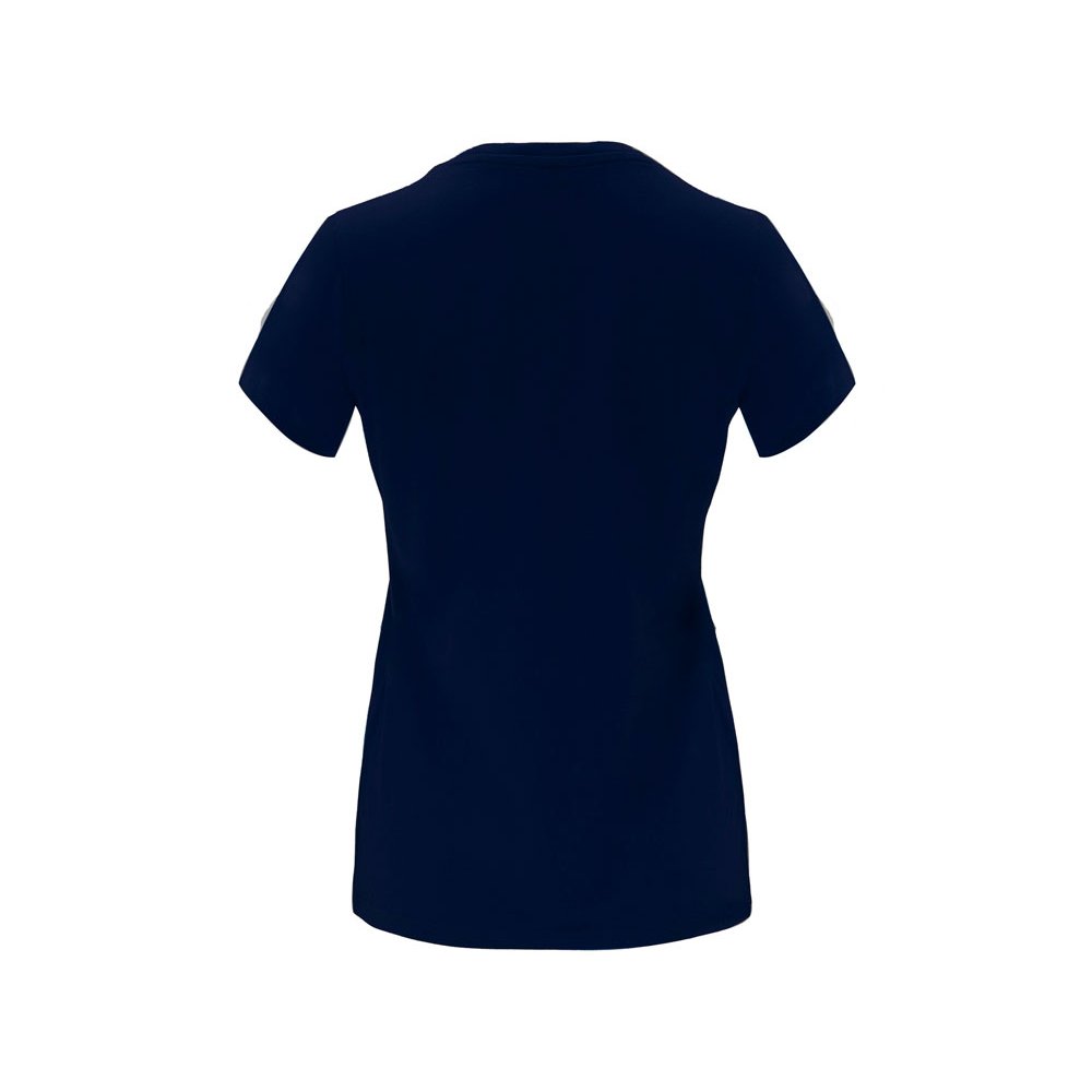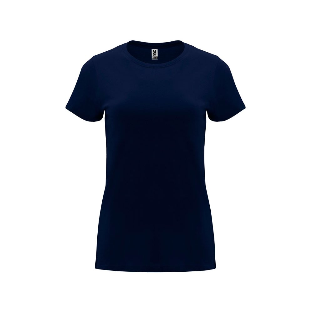 - Женская приталенная футболка. Круглый вырез горловины обработан рибом 1х1. Шов горловины укреплен тесьмой.