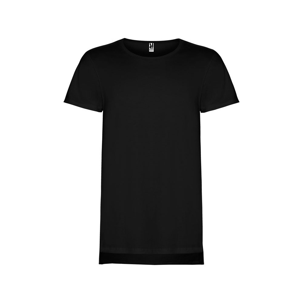 - Удлиненная футболка с коротким рукавом. Круглый вырез, разрезы в боковых швах, спинка длиннее полочки.