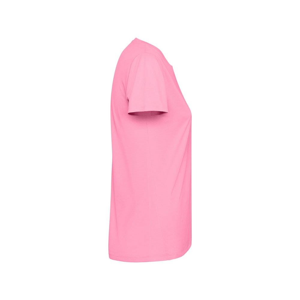 - Женская футболка с коротким рукавом из технологичного полотна. Отстрочки в тон. Спинка с удлинением. Боковые швы со смещением вперед.