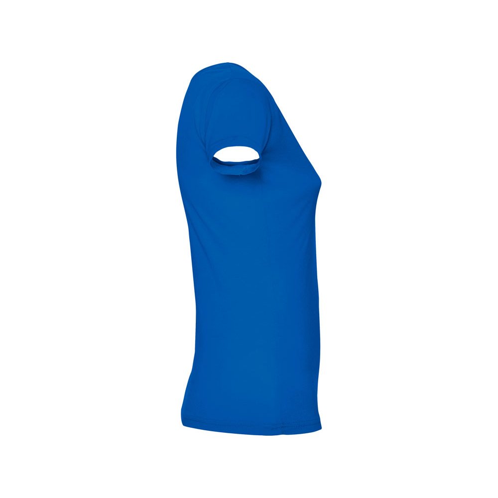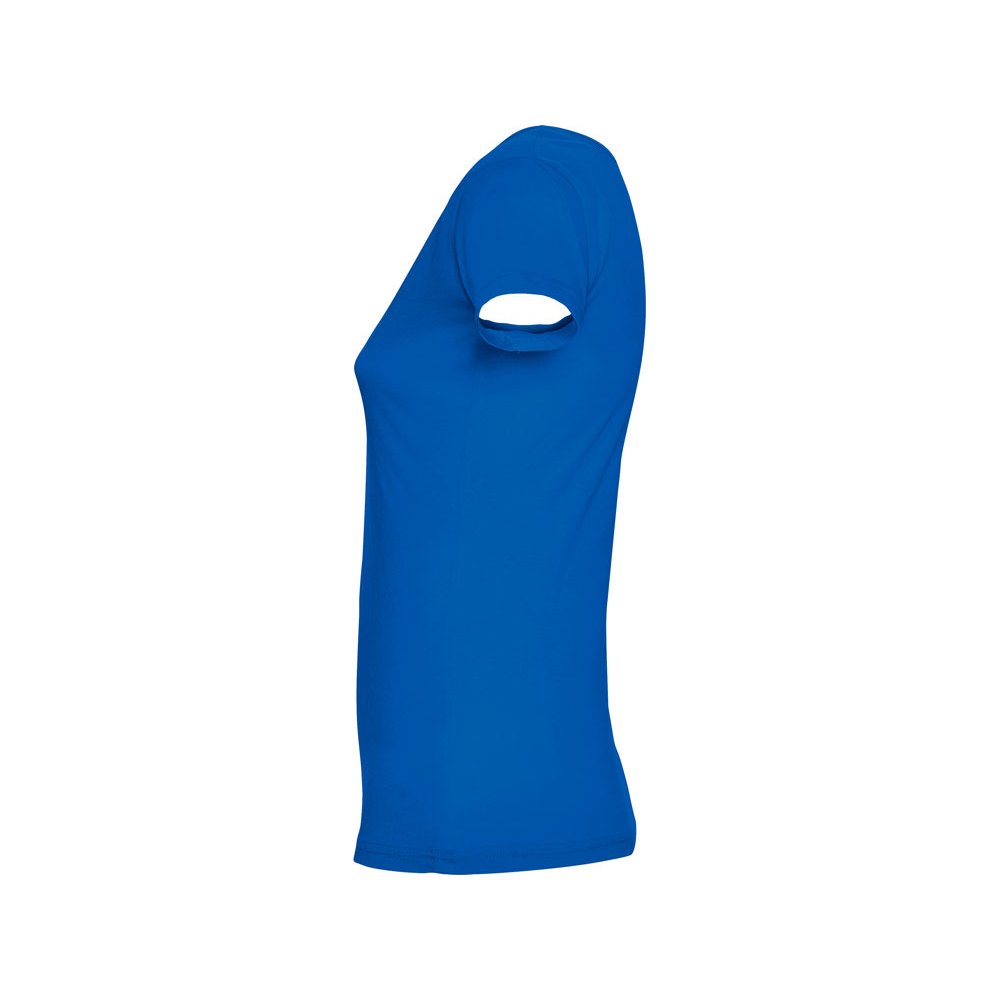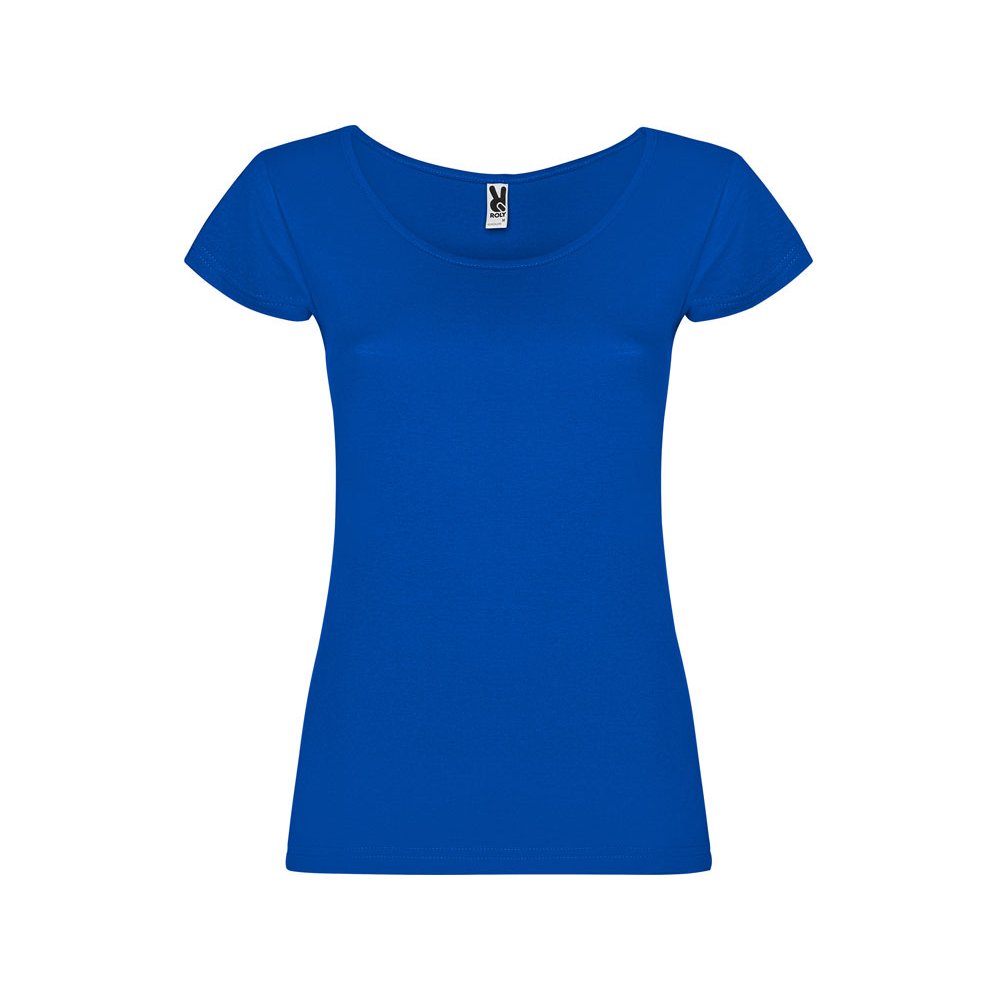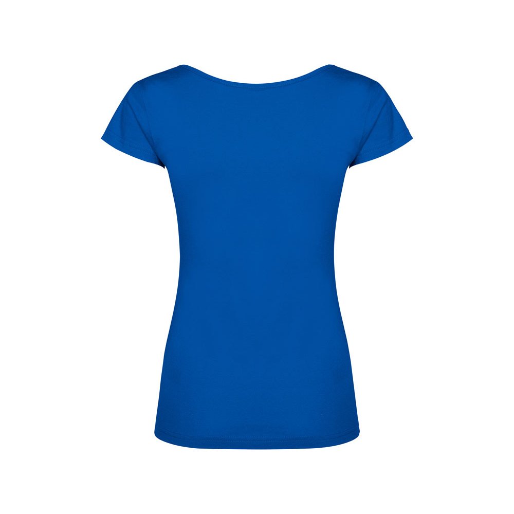 - Прилегающая женская футболка с глубоким вырезом, обработанным рибом.