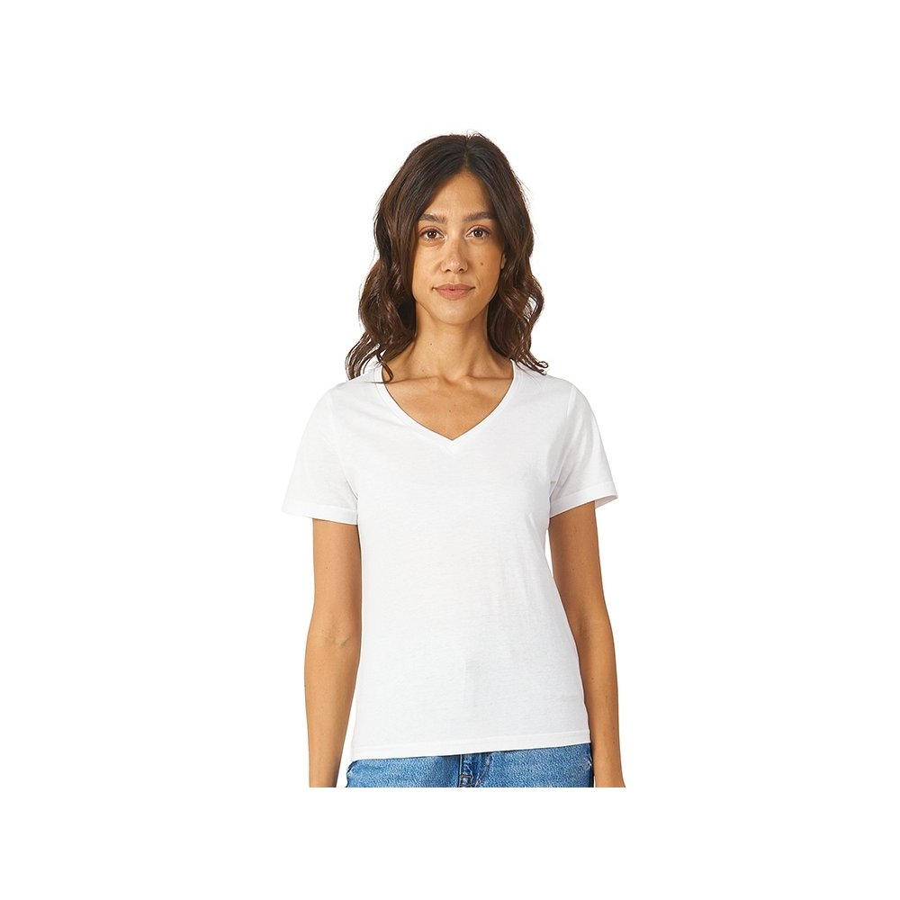- Женская футболка из натурального хлопка с элегантным V-образным вырезом. Материал отлично подходит для нанесения рекламной информации. Натуральная ткань не вызывает раздражения кожи.