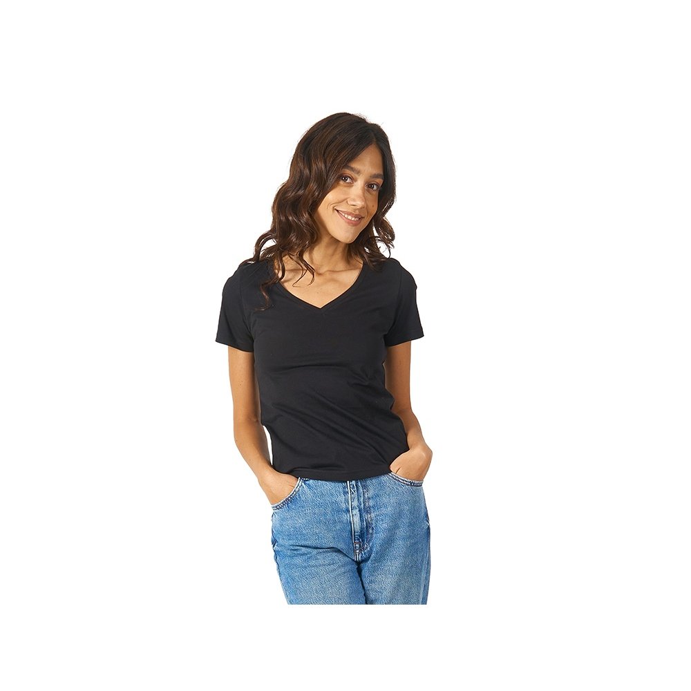- Женская футболка из натурального хлопка с элегантным V-образным вырезом. Материал отлично подходит для нанесения рекламной информации. Натуральная ткань не вызывает раздражения кожи.