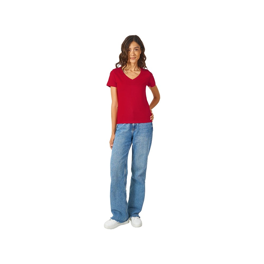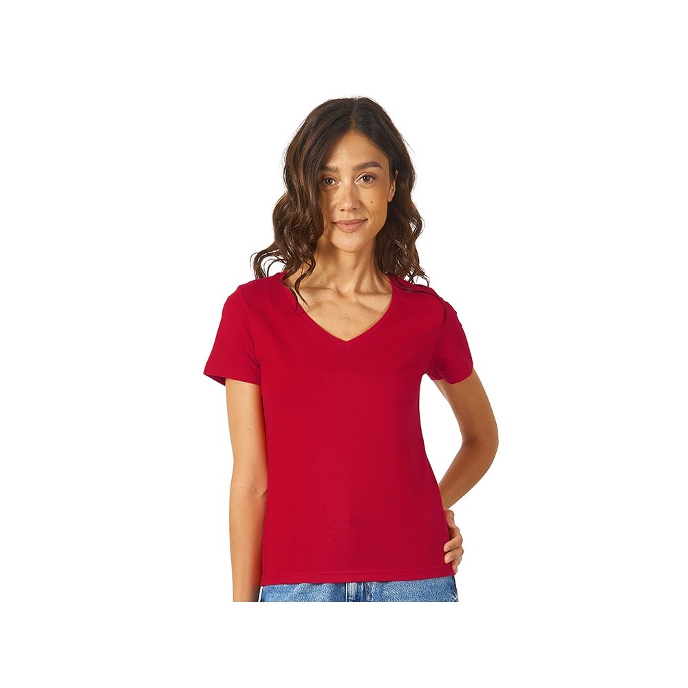 - Женская футболка из натурального хлопка с элегантным V-образным вырезом. Материал отлично подходит для нанесения рекламной информации. Натуральная ткань не вызывает раздражения кожи.