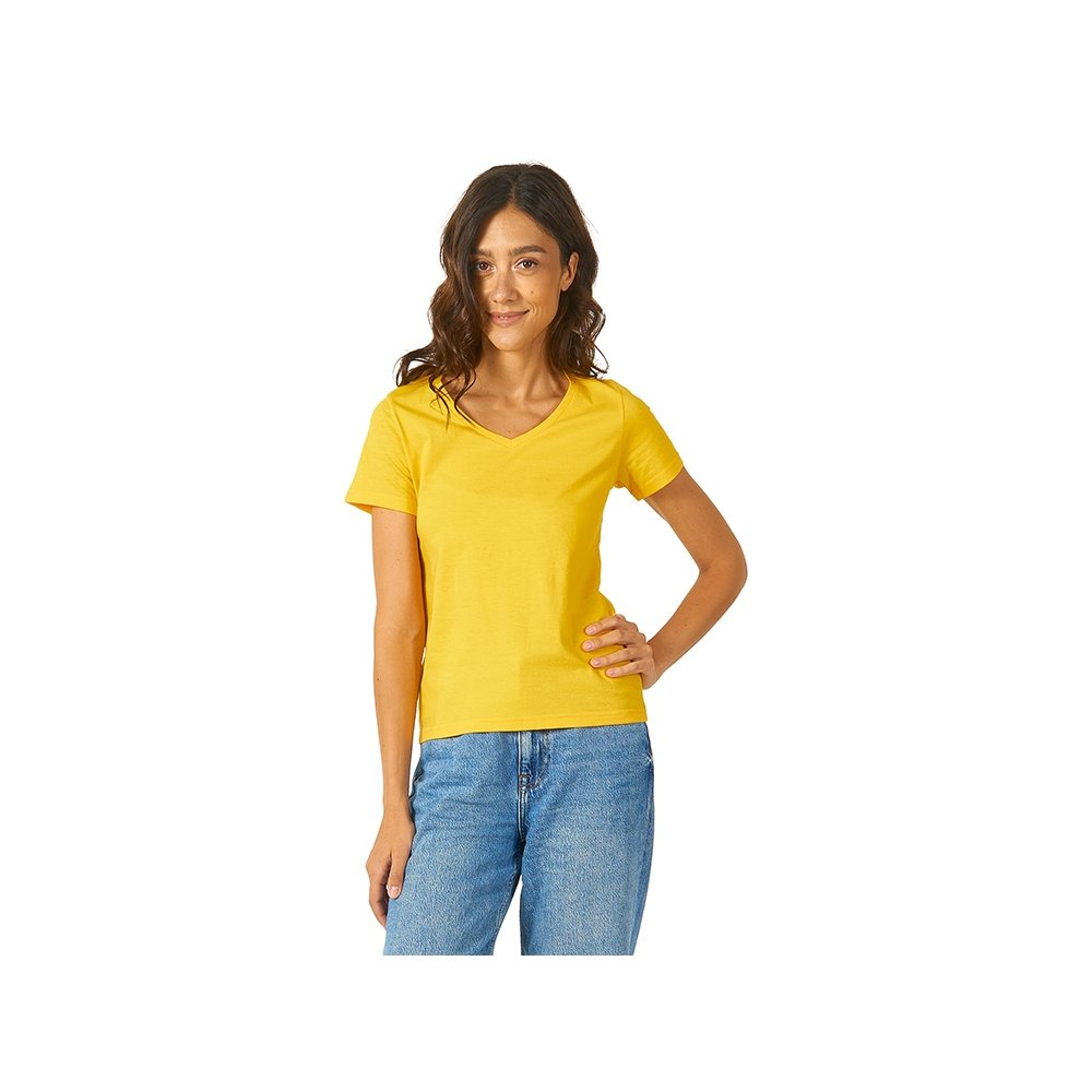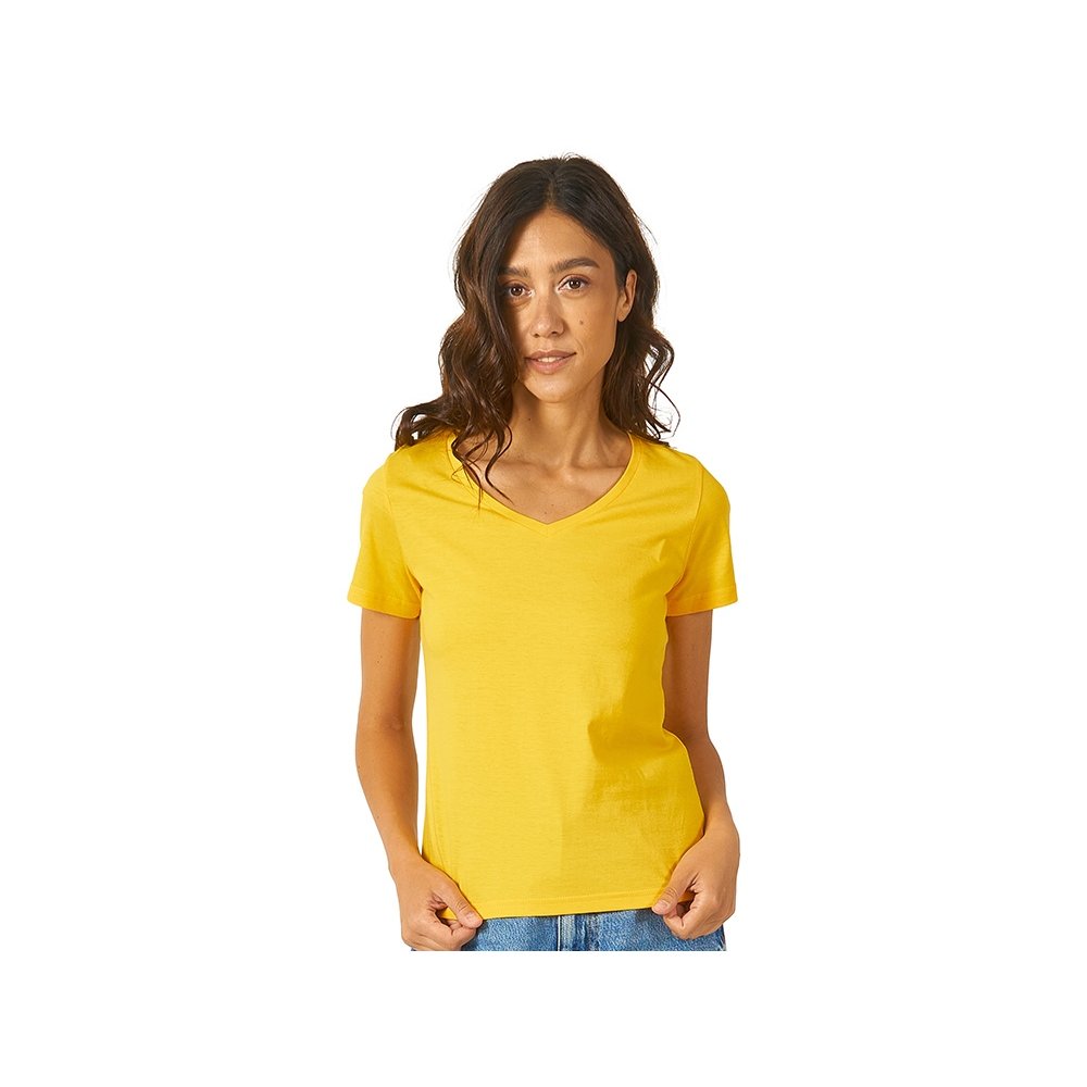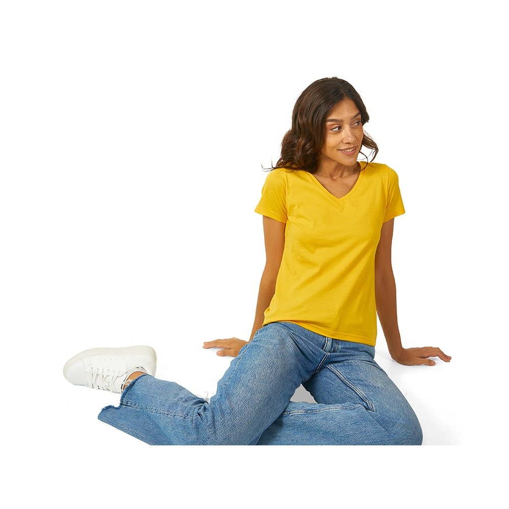 - Женская футболка из натурального хлопка с элегантным V-образным вырезом. Материал отлично подходит для нанесения рекламной информации. Натуральная ткань не вызывает раздражения кожи.