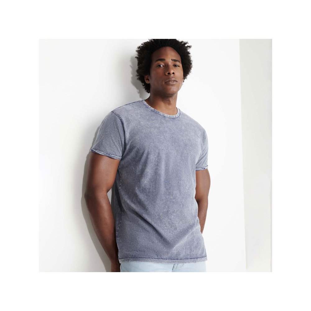 - Мужская футболка с джинсовым эффектом. Короткий рукав, горловина обработана рибом 1х1 и дополнительно укреплена тесьмой. Двойная отстрочка по пройме. Рукав с закручивающимся краем. В ассортименте также представлена аналогичная женская модель "Husky"