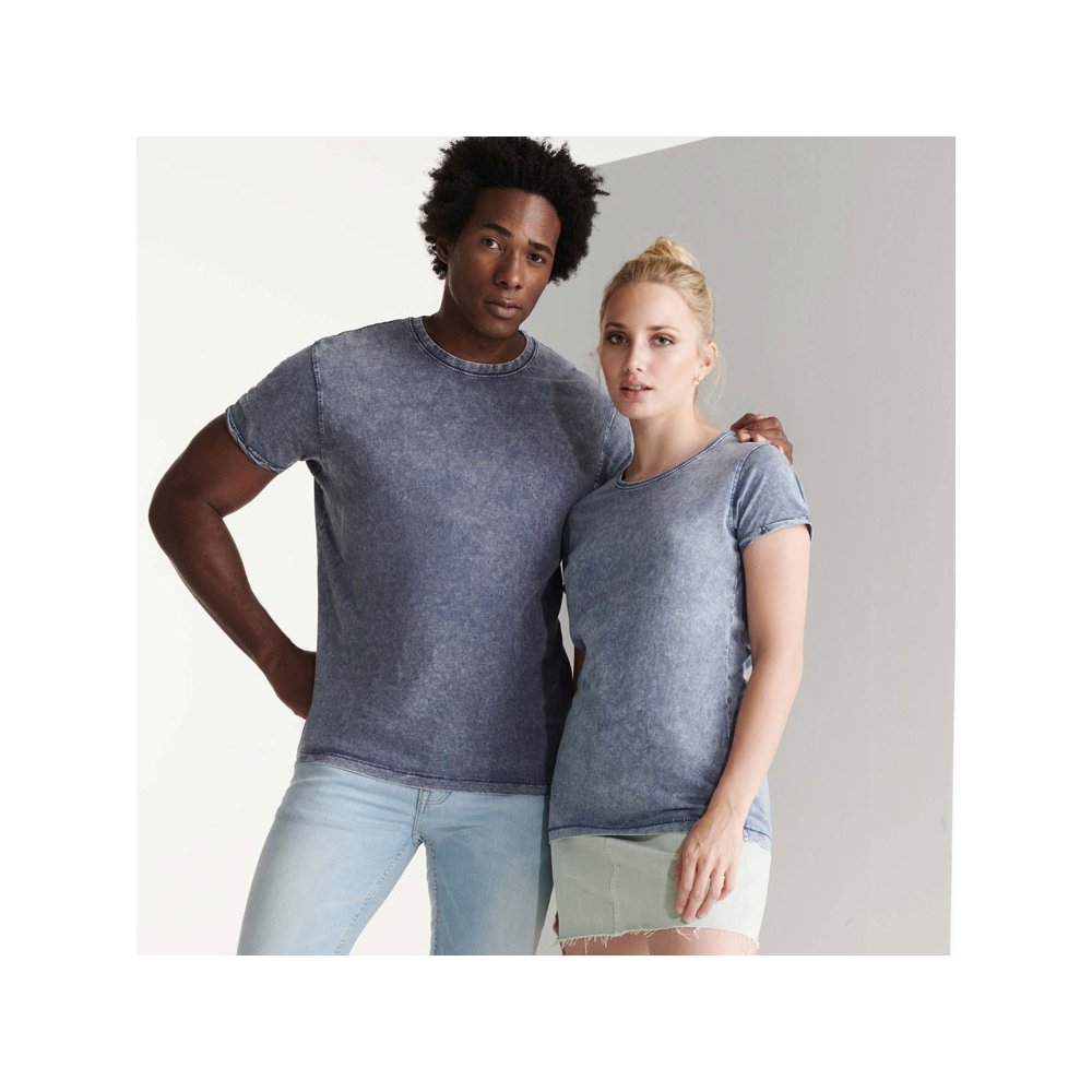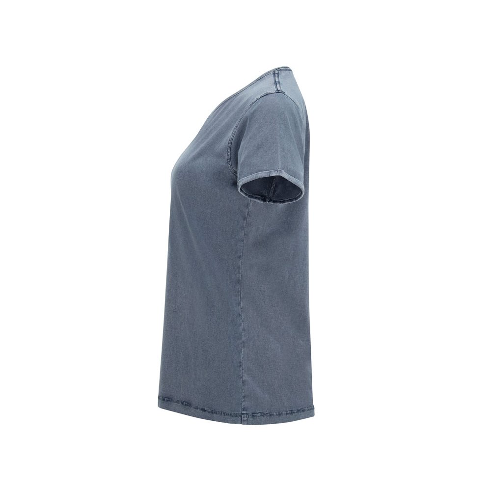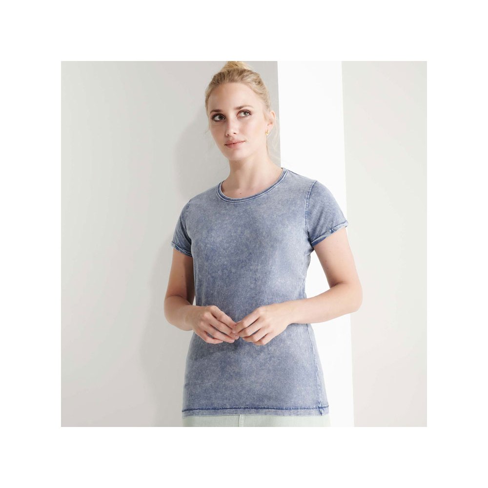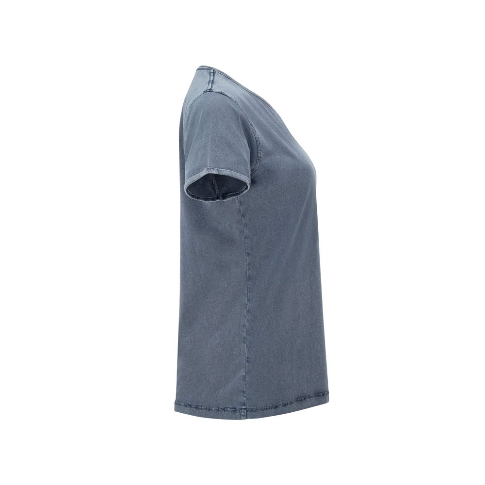- Женская футболка с джинсовым эффектом. Короткий рукав, горловина обработана рибом 1х1 и дополнительно укреплена тесьмой. Двойная отстрочка по пройме. Рукав с закручивающимся краем. В ассортименте также представлена аналогичная мужская модель "Husky"