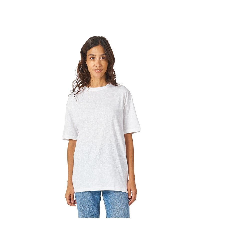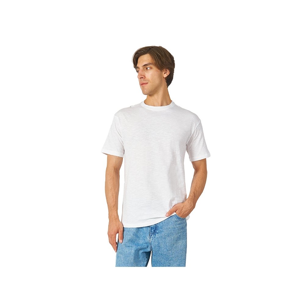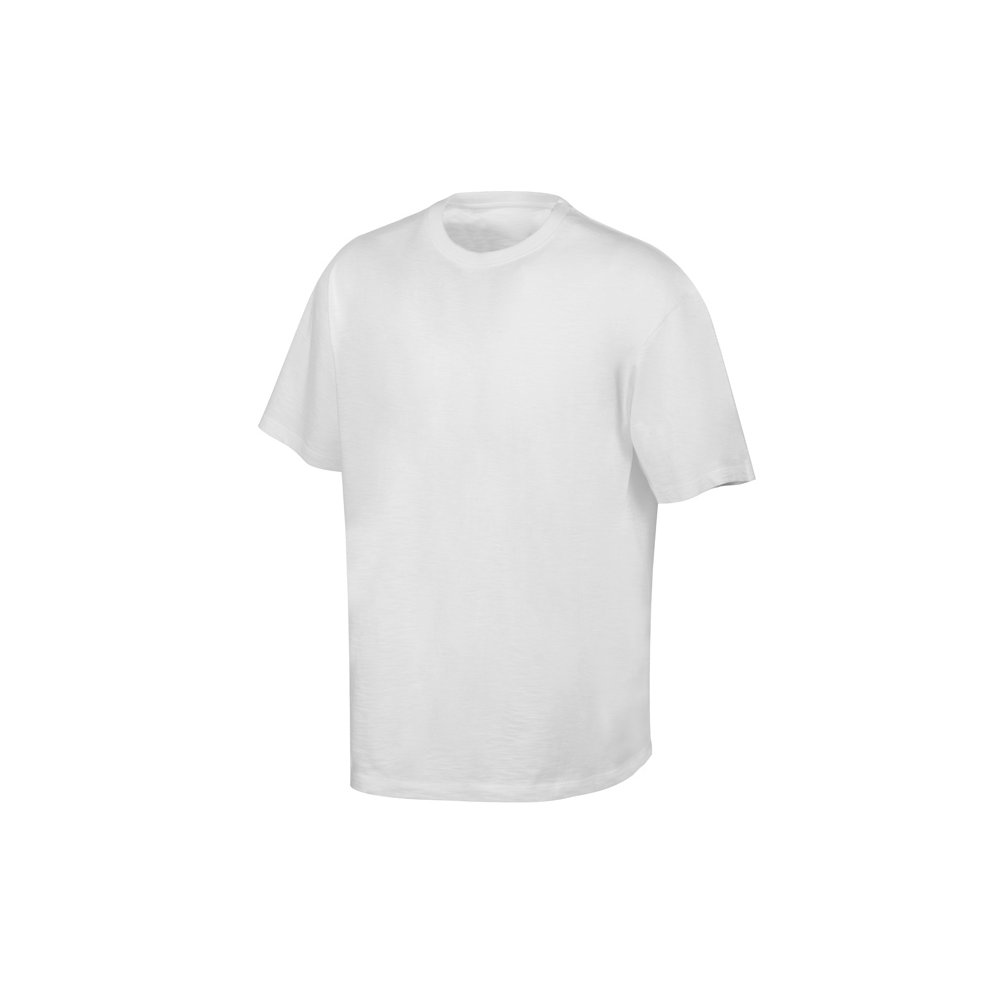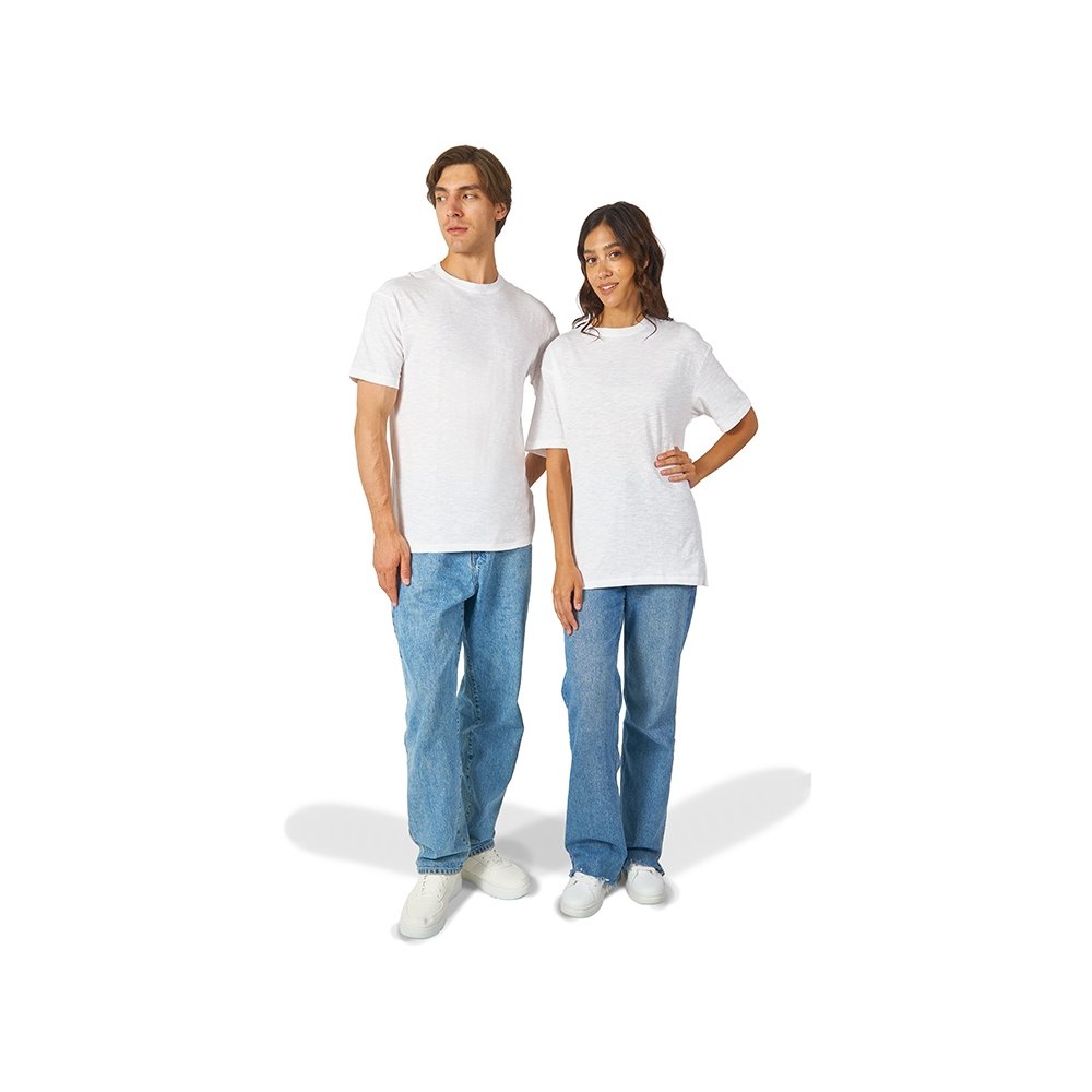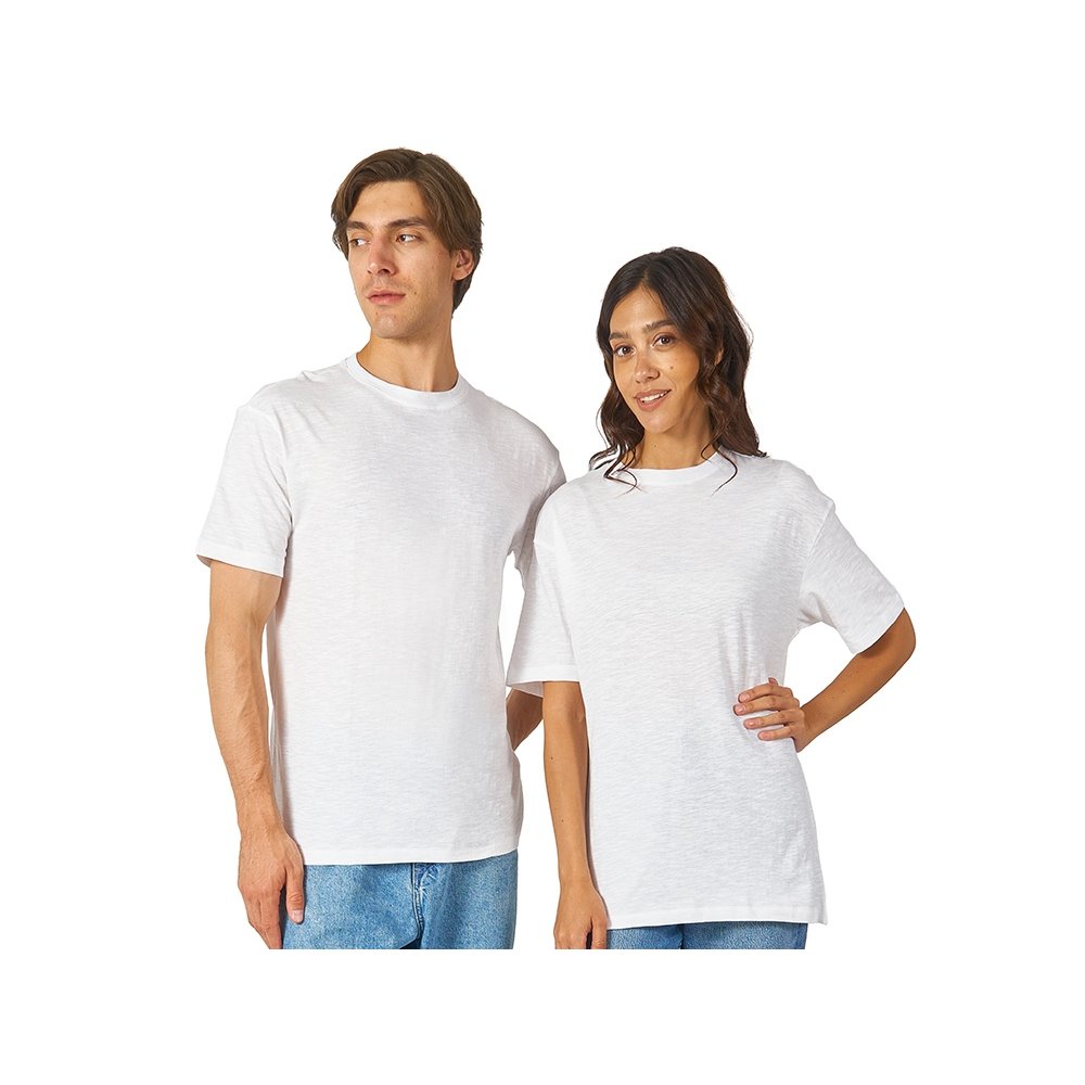 - Полотно футболки имеет необычную структуру - с протяжками, но при этом гладкую поверхность, что обеспечивает идеальную поверхность для нанесения: прямая печать, трафаретная или термотрансфер прекрасно ложатся на такое полотно. Декоративная отстрочка по низу рукавов и изделия, а также отстрочка по горловине позволяют футболке дольше сохранять форму. - необычная полотно - идеальный поверхность для нанесения - универсальный прямой силуэт
