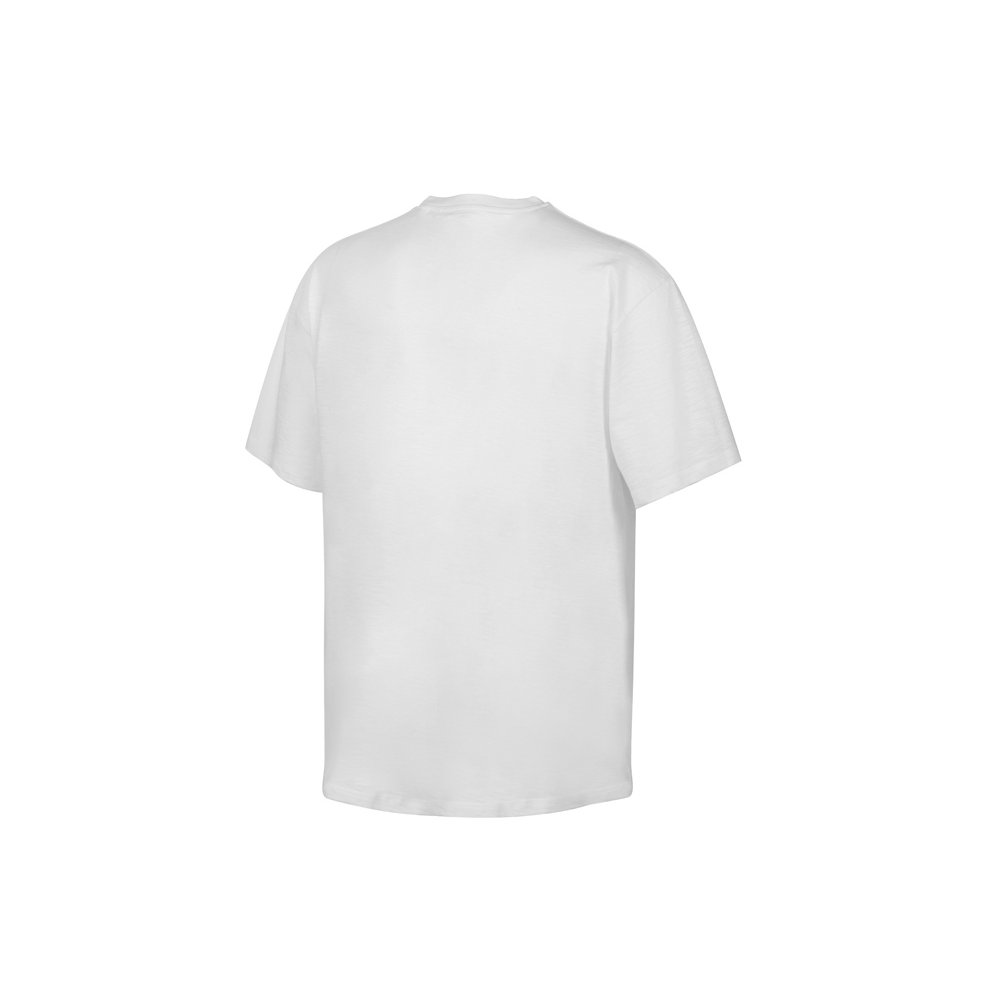 Полотно футболки имеет необычную структуру - с протяжками, но при этом гладкую поверхность, что обеспечивает идеальную поверхность для нанесения: прямая печать, трафаретная или термотрансфер прекрасно ложатся на такое полотно. Декоративная отстрочка по низу рукавов и изделия, а также отстрочка по горловине позволяют футболке дольше сохранять форму.