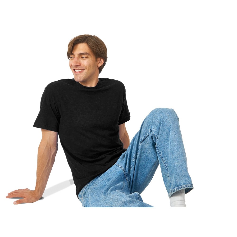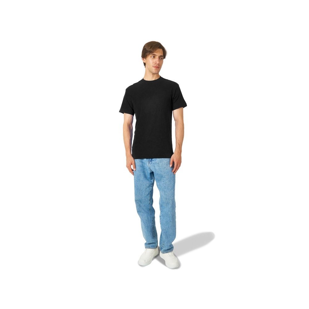 - Полотно футболки имеет необычную структуру - с протяжками, но при этом гладкую поверхность, что обеспечивает идеальную поверхность для нанесения: прямая печать, трафаретная или термотрансфер прекрасно ложатся на такое полотно. Декоративная отстрочка по низу рукавов и изделия, а также отстрочка по горловине позволяют футболке дольше сохранять форму. - необычная полотно - идеальный поверхность для нанесения - универсальный прямой силуэт