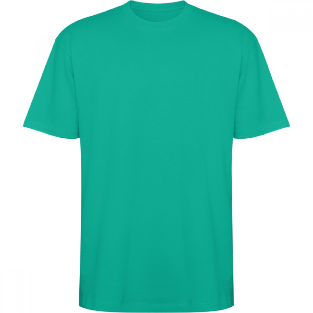 - Футболка свободного кроя оверсайз с короткими рукавами. Круглый вырез горловины с отделкой резинкой 2x1 и оверлочными швами в тон. Боковые швы. Широкая двойная строчка на рукавах и по нижнему краю.
