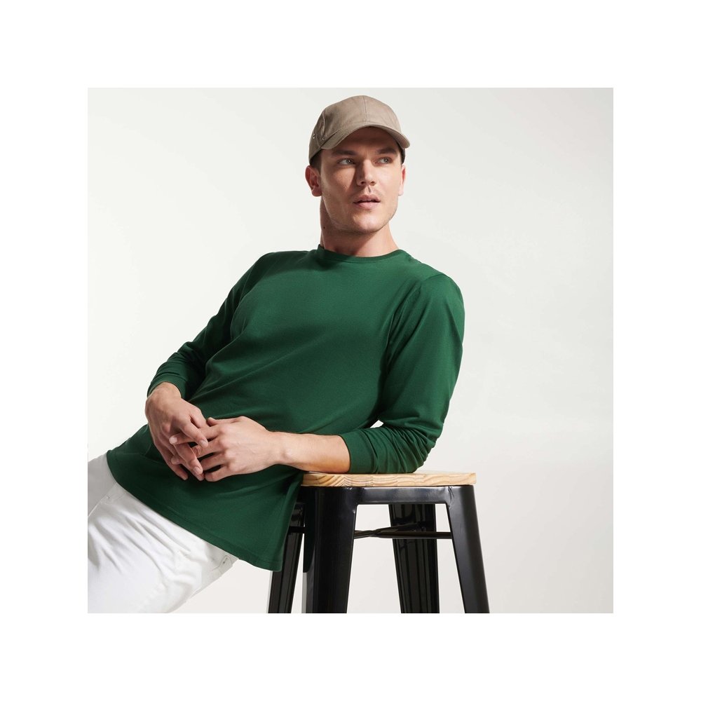 - Футболка с длинным рукавом без боковых швов. Круглый вырез горловины и манжеты из риба 1х1. Укрепляющая отделочная строчка по горловине и плечам