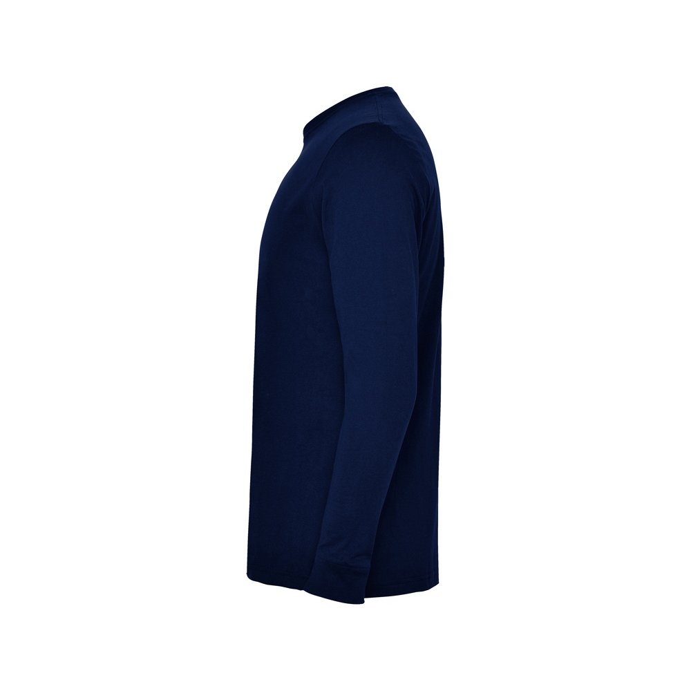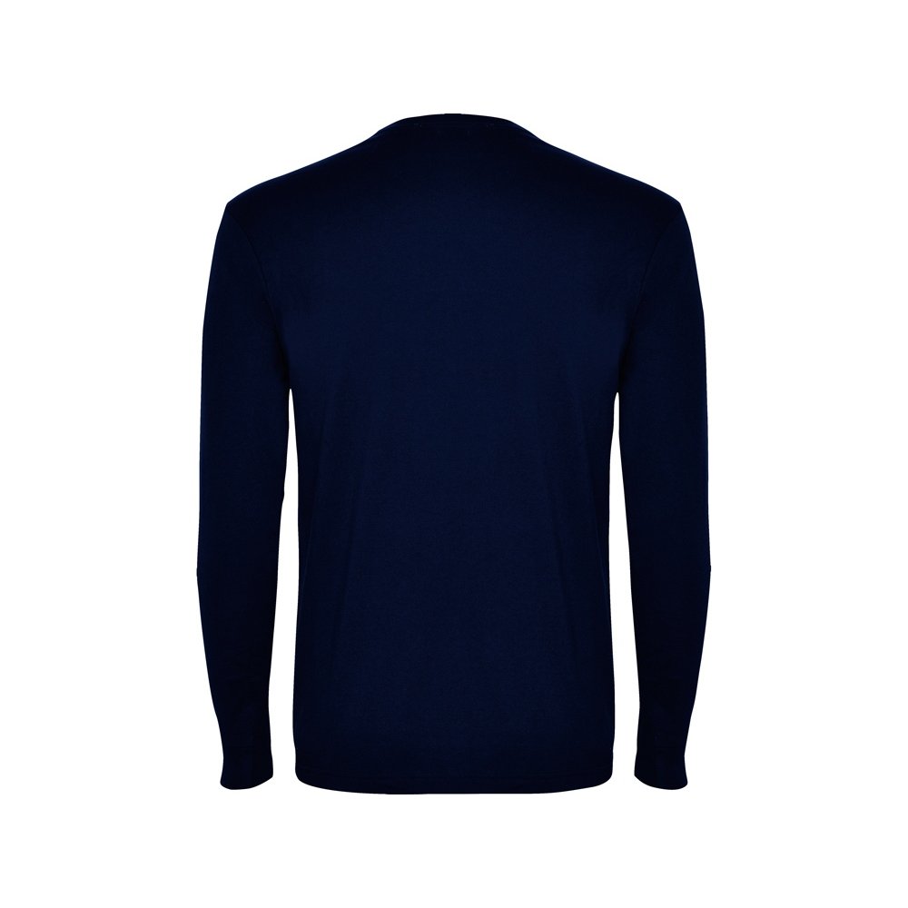 - Футболка с длинным рукавом без боковых швов. Круглый вырез горловины и манжеты из риба 1х1. Укрепляющая отделочная строчка по горловине и плечам