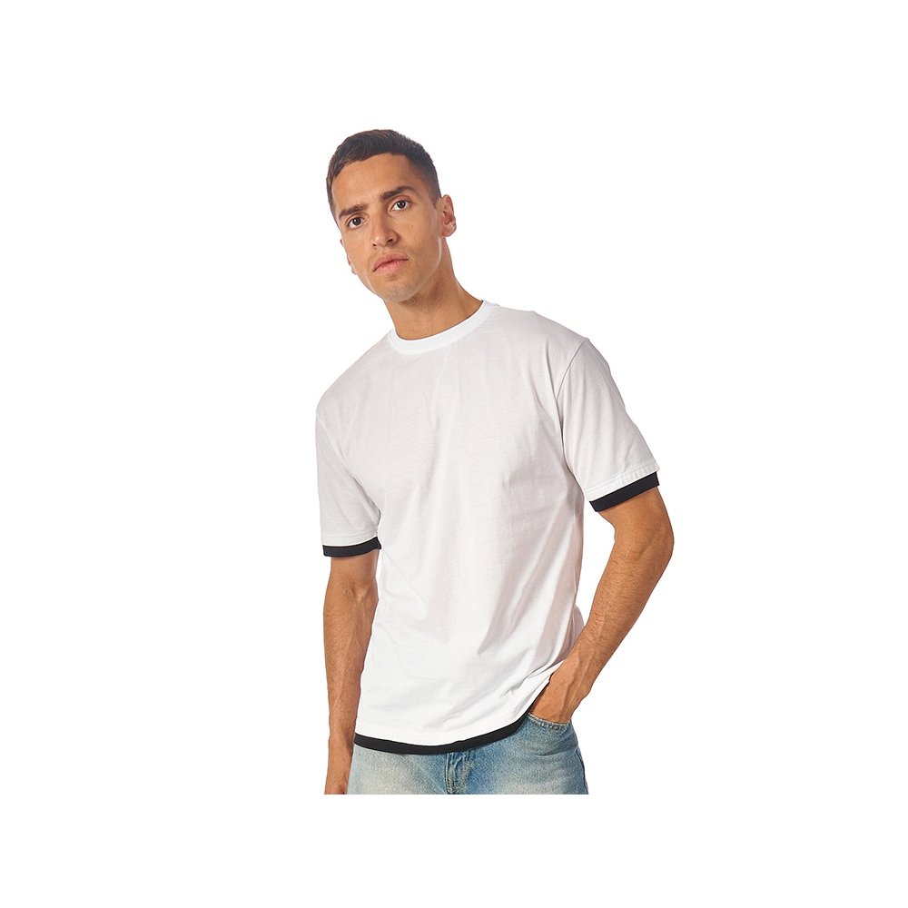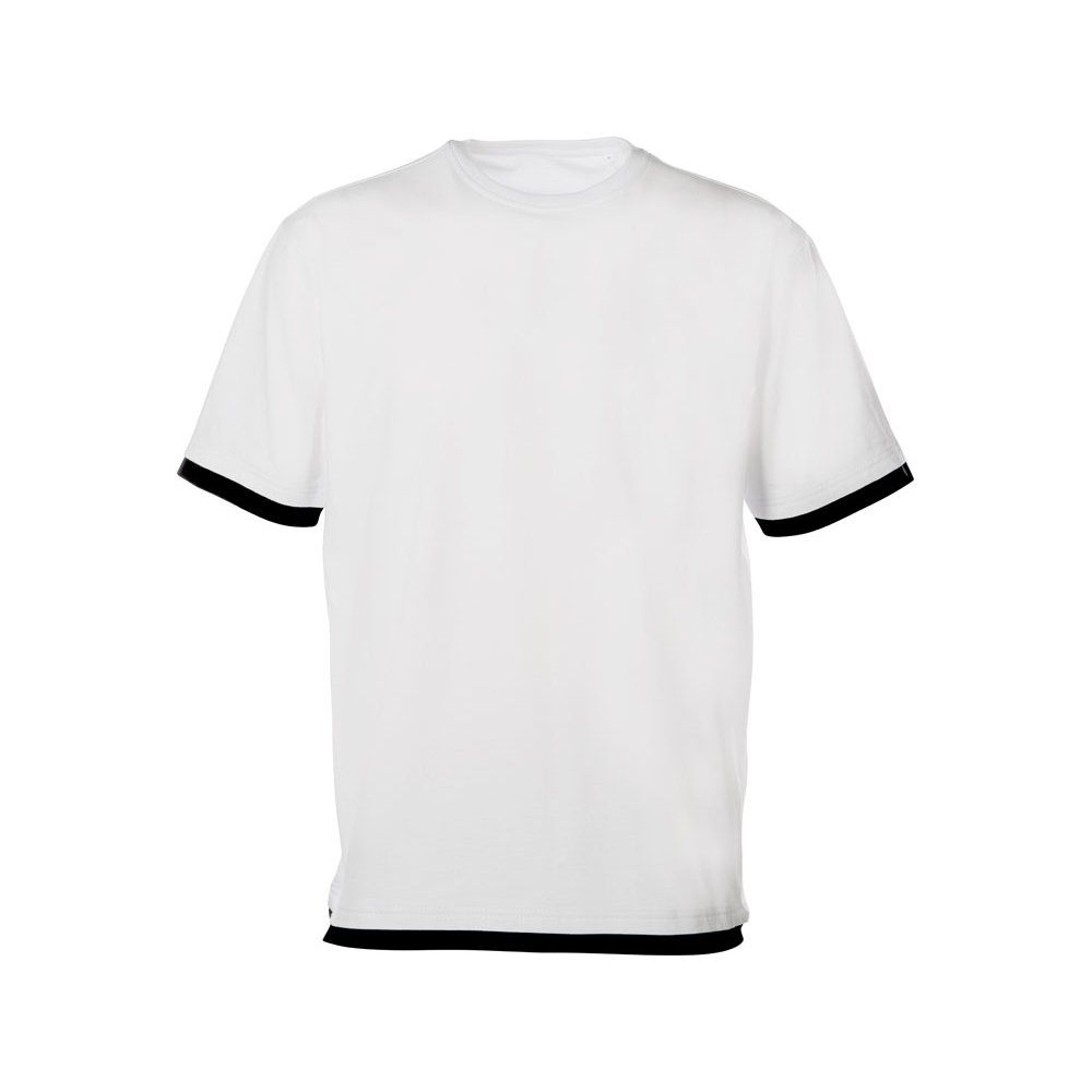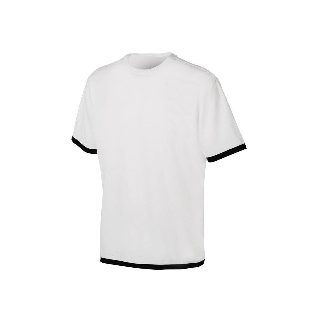 - Футболка комфортной посадки с контрастной отделкой по низу и рукавам, которую можно удачно зарифмовать с вашим лого или изображением по цвету. Благодаря скрытому лейблу все внимание будет обращено к вашему нанесению. Материал — джерси из хлопка, средней плотности 150гр/м2, что позволяет носить футболку в жаркие летние дни.