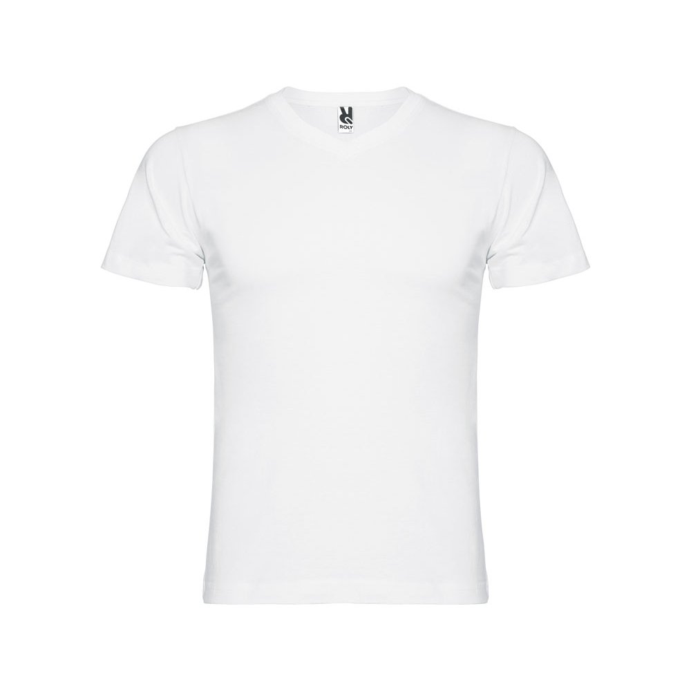 - Мужская футболка без боковых швов с коротким рукавом и V-образным вырезом горловины, отделанном рибом 1х1. Горловина и плечевые швы дополнительно укреплены тесьмой.