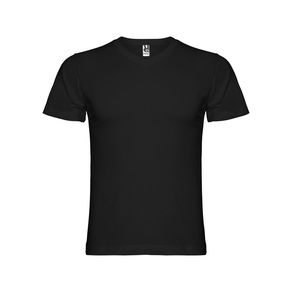 - Мужская футболка без боковых швов с коротким рукавом и V-образным вырезом горловины, отделанном рибом 1х1. Горловина и плечевые швы дополнительно укреплены тесьмой.