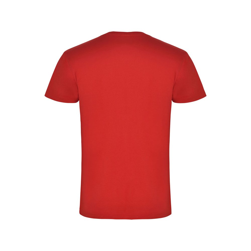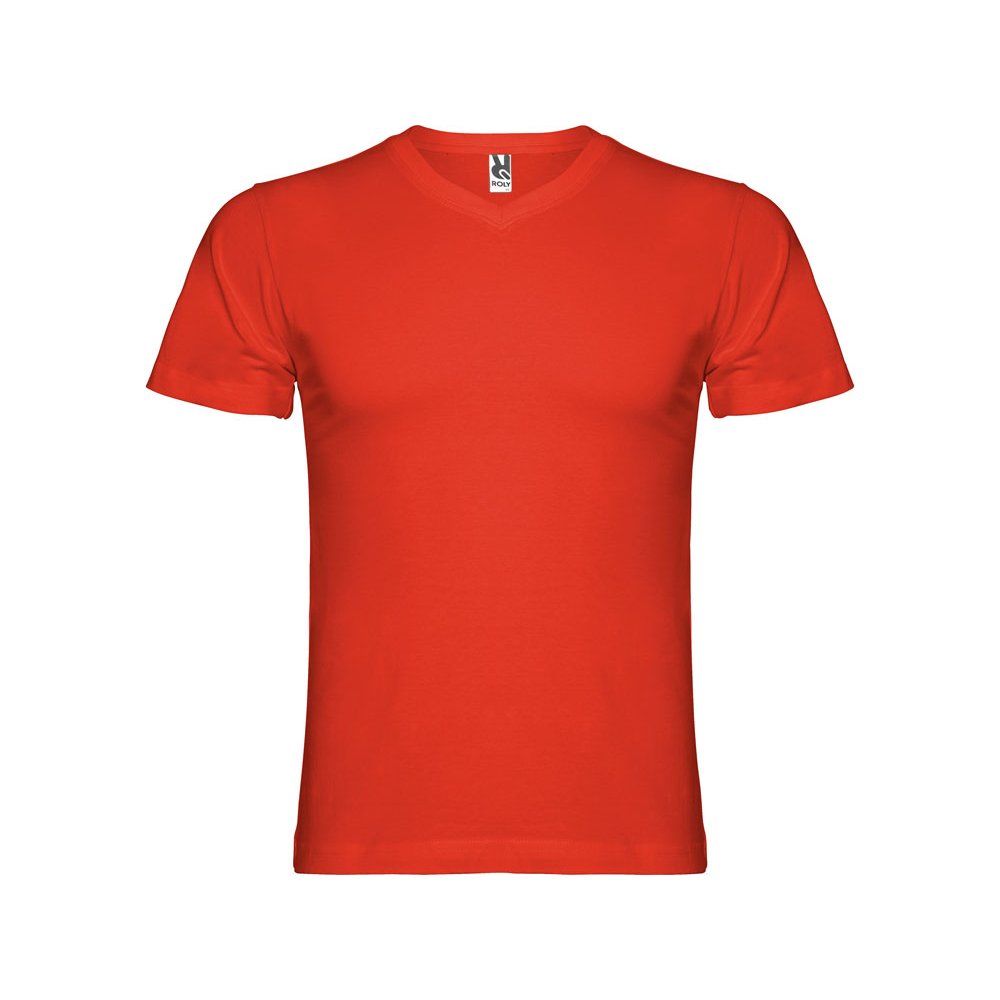 - Мужская футболка без боковых швов с коротким рукавом и V-образным вырезом горловины, отделанном рибом 1х1. Горловина и плечевые швы дополнительно укреплены тесьмой.