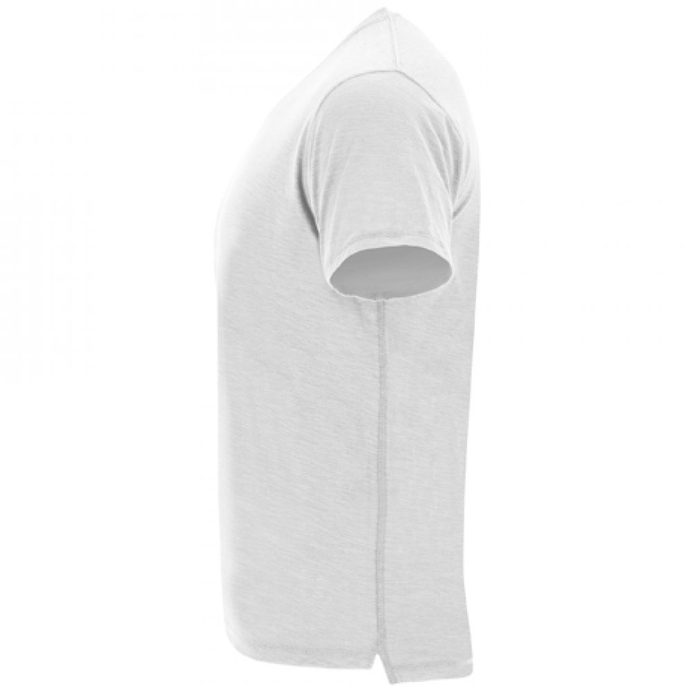 - Футболка с короткими рукавами меланжевого цвета и асимметричным низом. Круглая горловина из той же ткани, украшенная оверлочным швом. Контрастные закрытые внутренние плечевые швы. Боковые швы, украшенные оверлочным швом. Боковые разрезы снизу. Спинка немного длиннее переда.