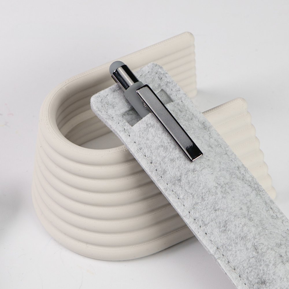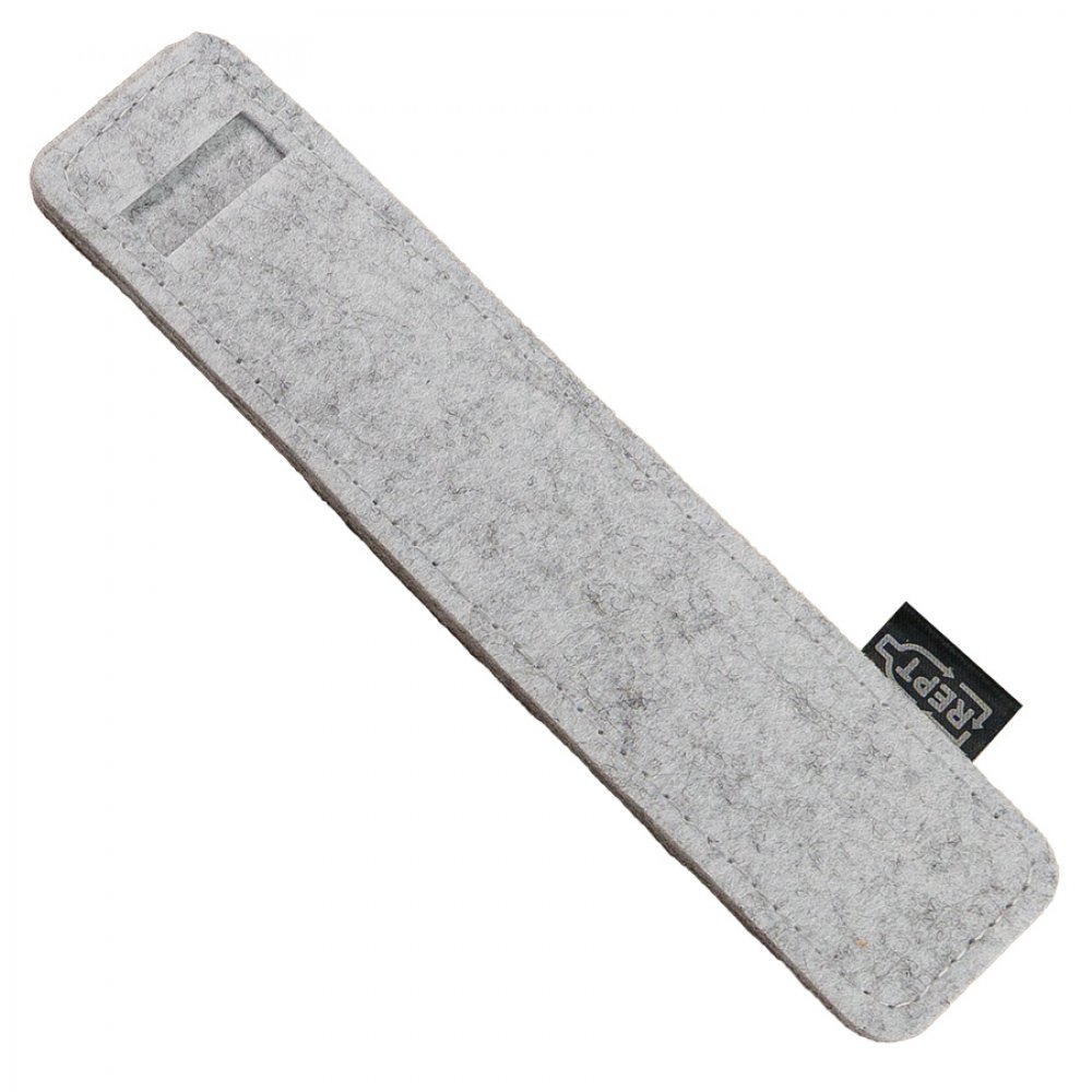 - Футляр для ручки из R-Pet фетра. Форма скругленный прямоугольник. Размер: 4 х 17 см. Может быть отдельной раздаточной единицей, а так же дополнением к письменному инструменту.Цвет, близкий к Pantone Cool Gray 8C.