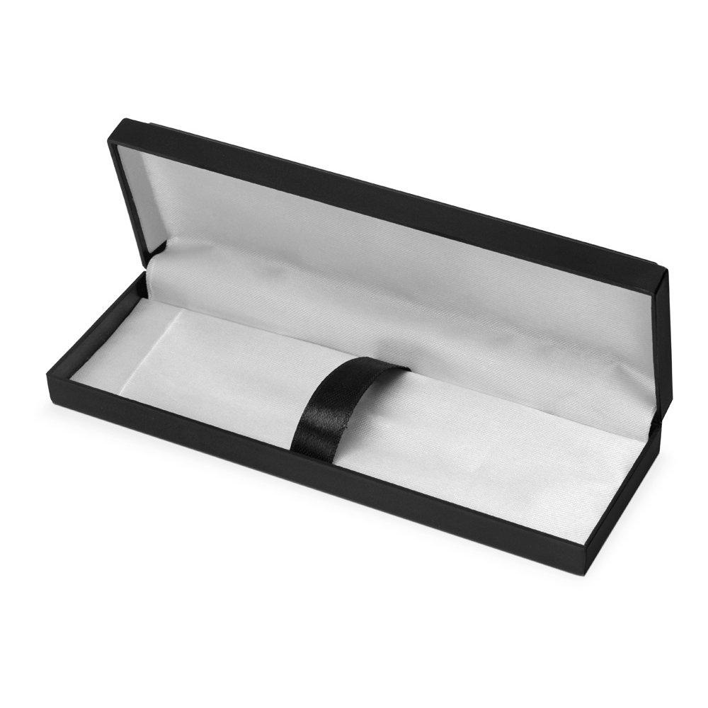 - Футляр - идеально сохранит и презентует одну или пару ручек. Изготовлен из черного пластика и белого атласного ложемента, пишущий инструмент закрепляется с помощью резинки прикрытой лентой.