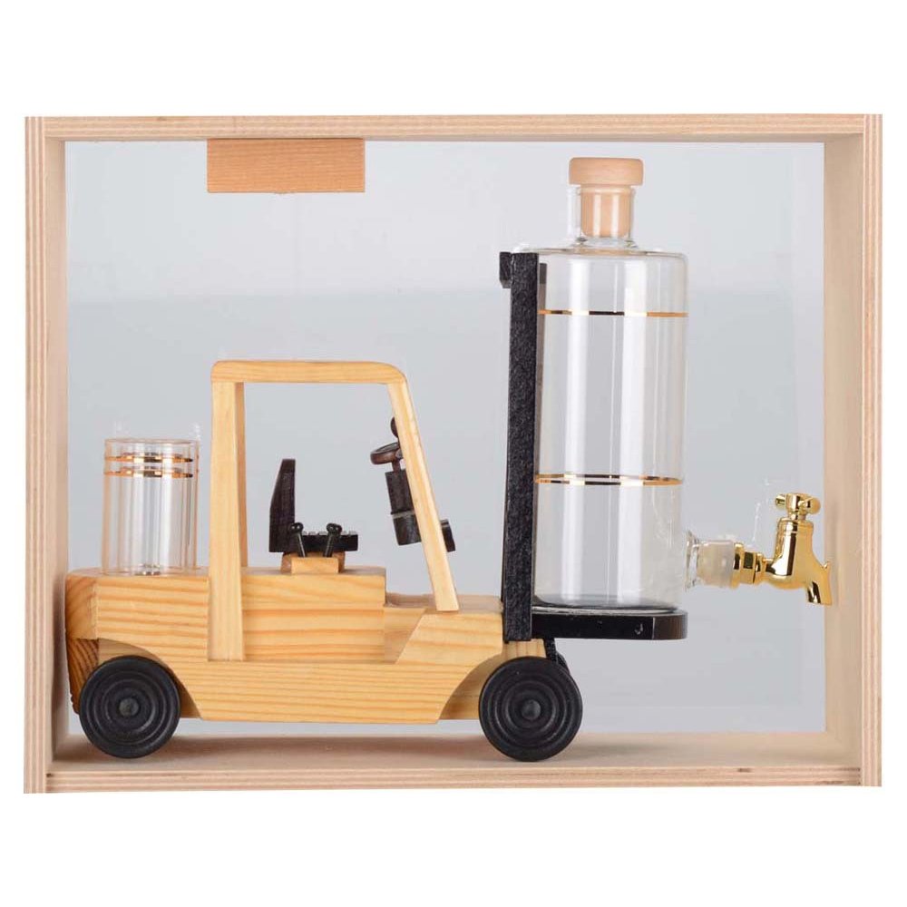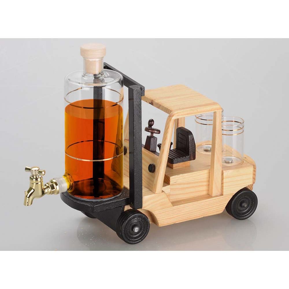 - Креативный подарок для руководителей транспортных, производственных и торговых компаний. Графин для виски с краном и подставкой в форме погрузчика оснащен двумя стопками. Набор позволит разрядить обстановку и отметить достижения в узком кругу.