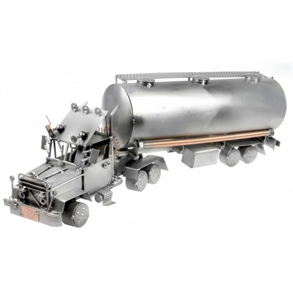Металлические фигурки — ручная работа талантливого дизайнера из Германии. Нет такой области в жизни, что не вдохновила бы его на создание очередной металлической фигурки причудливой формы, отличительной особенностью которой является использование таких предметов, как болты, гайки, проволока, различные пластины и т. п. Необыкновенный стиль, который можно трактовать как Modern, Hi-Tech или даже Steampunk, сделали фигурки популярными во всём мире.Такая фигурка подойдет для любителей техники, автолюбителей или в качестве подарка. Надежный и долговечный, грузовик из металла станет ярким акцентом в вашем доме или офисе.