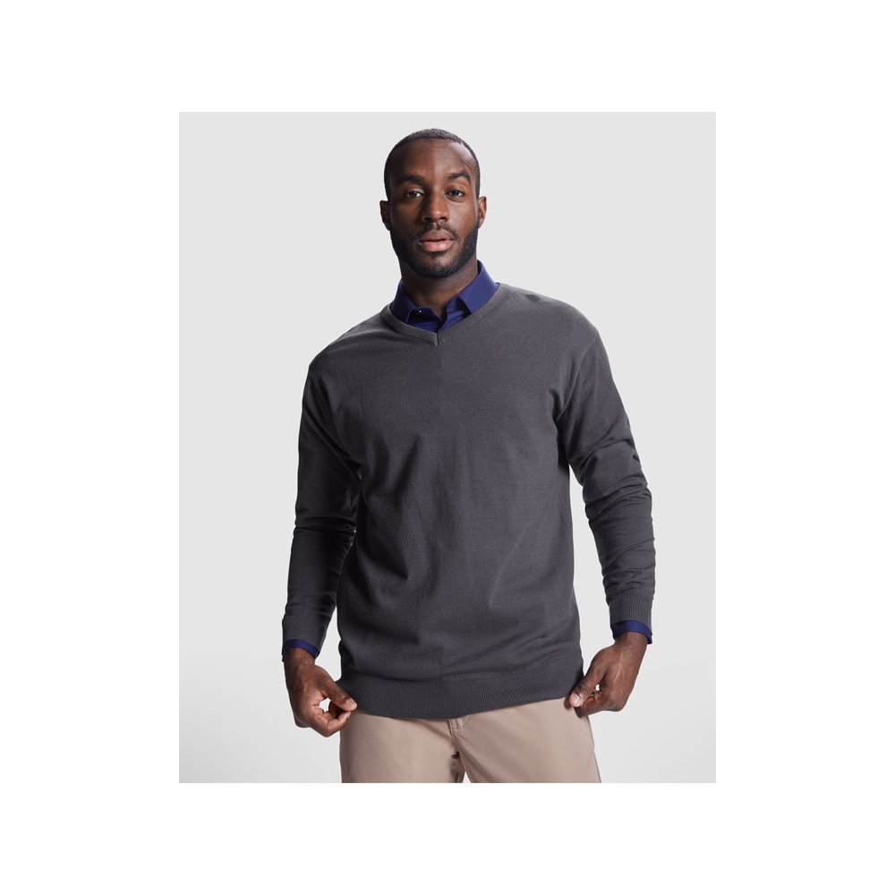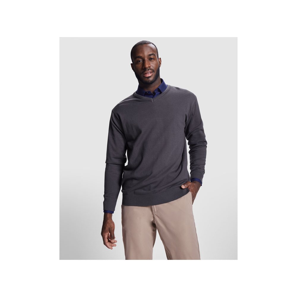 - Джемпер c V вырезом тонкой вязки для мужчин. Отделка рибом 1х1 по горловине, низу и манжетам