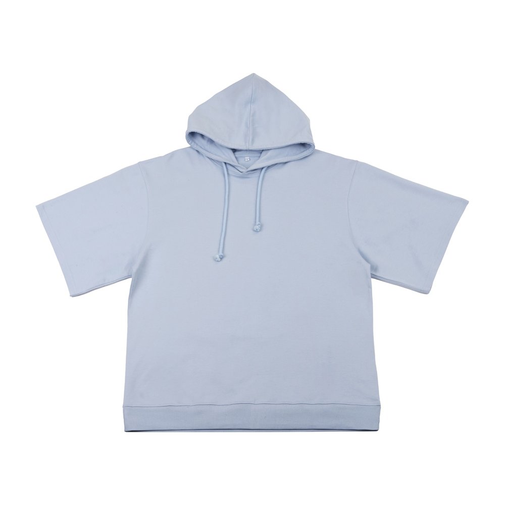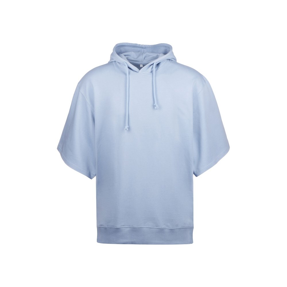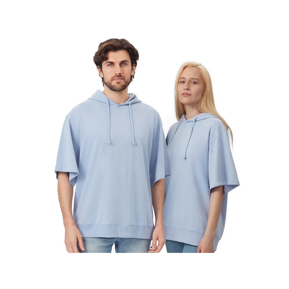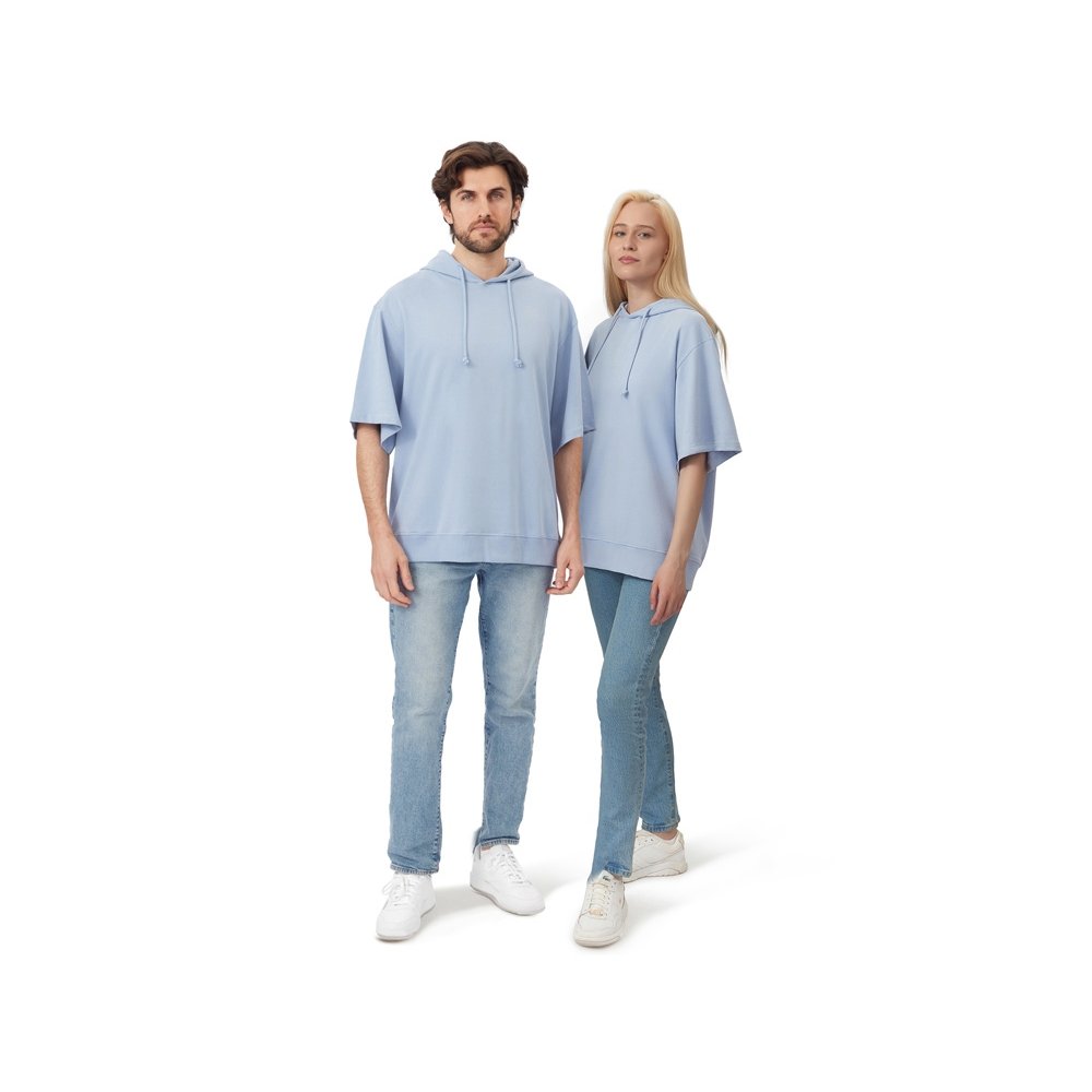- Худи с коротким рукавом выполнено из хлопкового френч терри с петельками на изнаночной стороне. Подкладка капюшона выполнена из основного полотна для объемной посадки. Модель комфортной и актуальной посадки оверсайз отлично подходит для обычной жизни и в качестве промо мерча. - оверсайз посадка - низ обработан рибом 2х2 и дополнительно отстрочен для укрепления - мягкое и качественное полотно френч терри - увеличенная зона для нанесения из-за отсутствия кармана