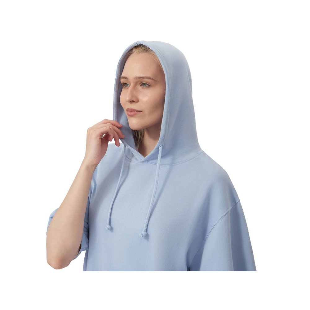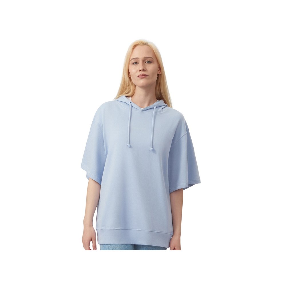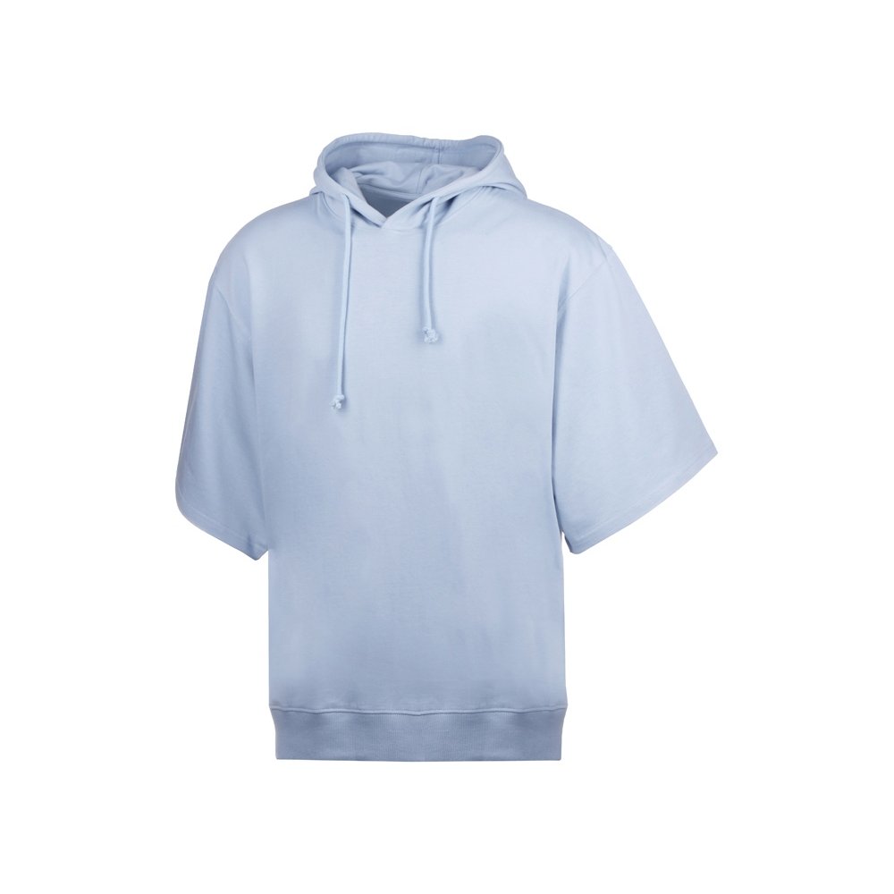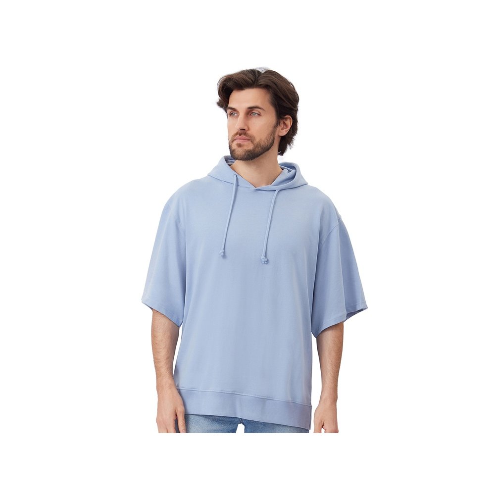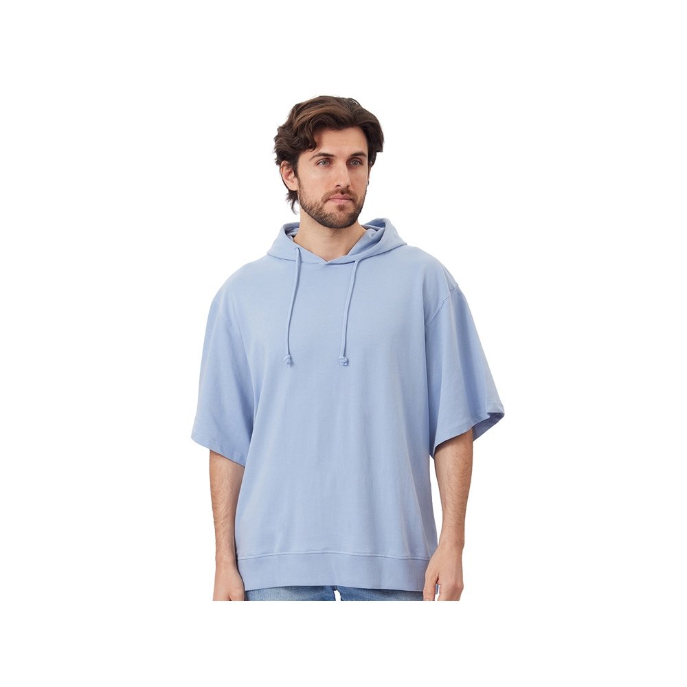 - Худи с коротким рукавом выполнено из хлопкового френч терри с петельками на изнаночной стороне. Подкладка капюшона выполнена из основного полотна для объемной посадки. Модель комфортной и актуальной посадки оверсайз отлично подходит для обычной жизни и в качестве промо мерча. - оверсайз посадка - низ обработан рибом 2х2 и дополнительно отстрочен для укрепления - мягкое и качественное полотно френч терри - увеличенная зона для нанесения из-за отсутствия кармана