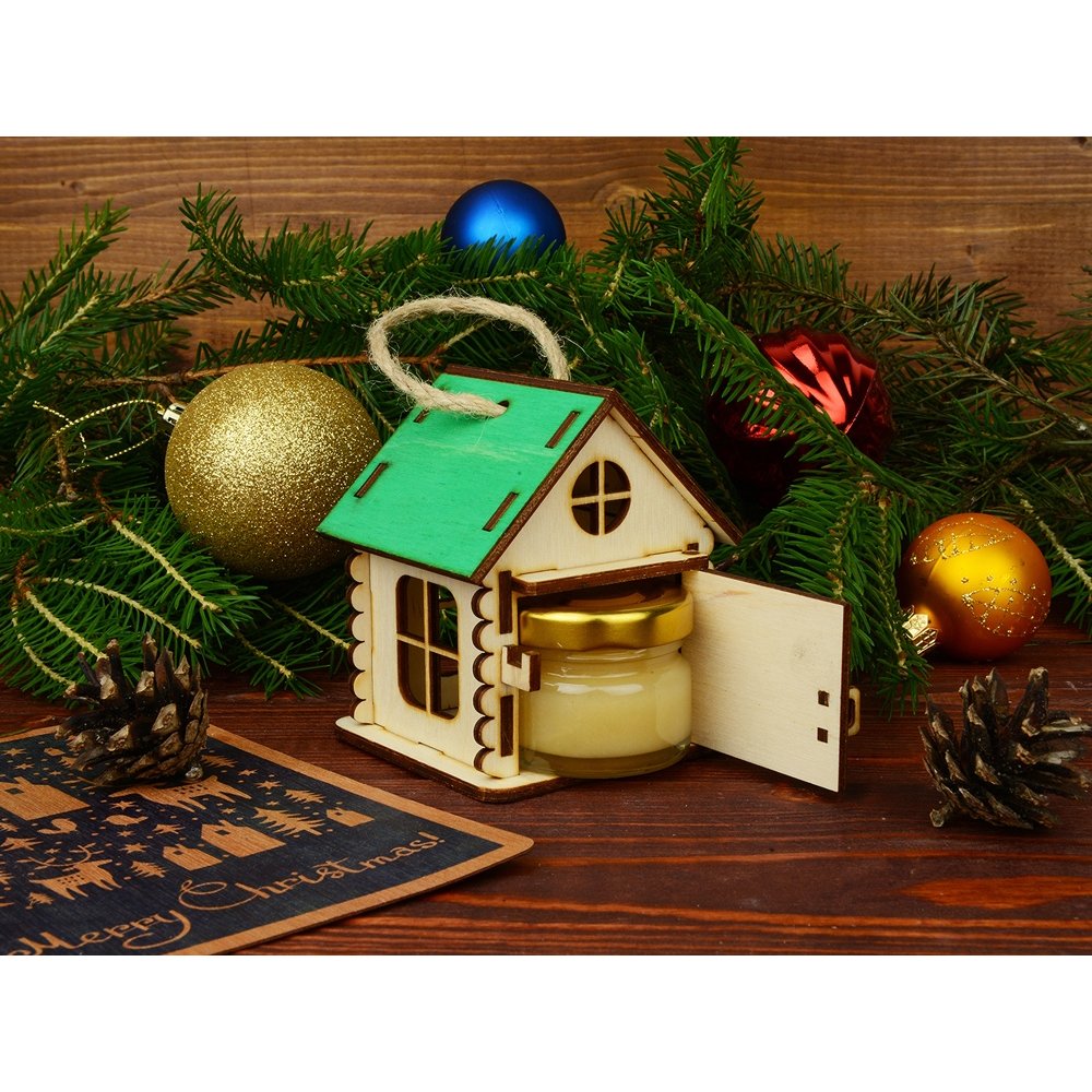 - Подарочная упаковка “Домик” выполнена в виде игрушки, которую легко можно поставить на стол, шкаф или повесить на стену. Ее также можно использовать, как елочное украшение или новогодний подарок. Она изготовлена из экологически чистых материалов и обладает чарующим древесным ароматом. В домике открывается дверца, и в него можно поместить небольшую баночку с медом или вареньем. Яркие цвета крыши домиков и эффектная конструкция помогут украсить любой интерьер, как в офисе, так и в квартире. Подарочная упаковка “Домик” позволит вам сделать оригинальный и запоминающийся подарок для руководителя или коллеги.