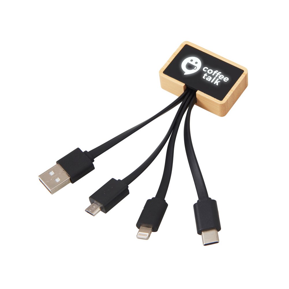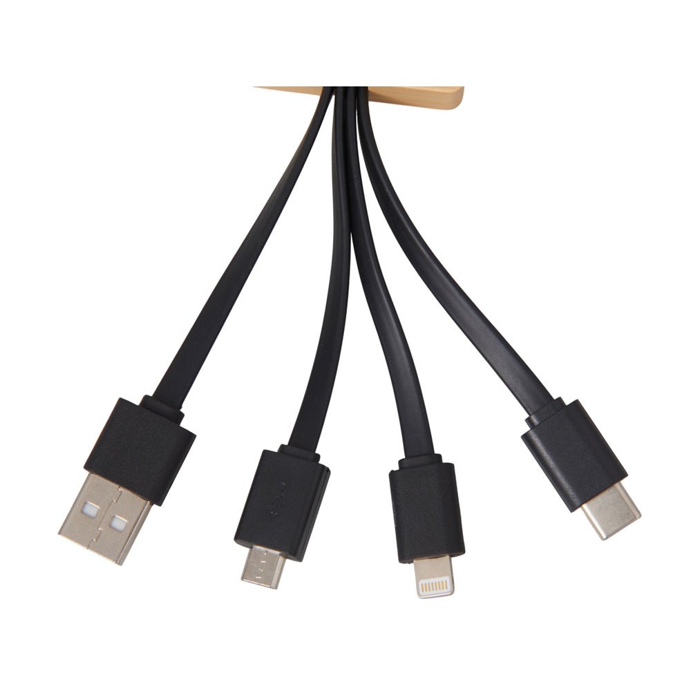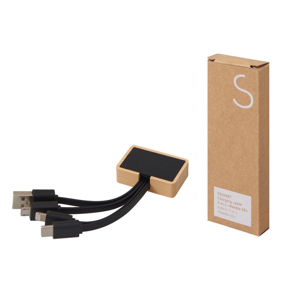 - Универсальный зарядный кабель 3-в-1 — элегантное решение для владельцев любых гаджетов. С тремя разъемами (USB-C, micro USB, Lightning), он заменяет три кабеля в одном компактном корпусе, выполненном из натурального бамбука и переработанного ABS-пластика. Это не просто практичный аксессуар — это экосознательный стиль, который подчеркнёт ваш вкус и заботу об окружающей среде. Встроенная белая подсветка с возможностью нанесения логотипа добавляет изюминку: ваш бренд или инициалы мягко светятся при подключении, создавая эффект премиальности и индивидуальности. Идеален для повседневного использования, путешествий и в качестве запоминающегося корпоративного подарка. - 3 разъёма в одном — USB-C, micro USB и Lightning для любых устройств - Экологичный корпус — натуральный бамбук + переработанный ABS-пластик - Логотип с подсветкой — ваш бренд мягко светится при зарядке, усиливая узнаваемость - Компактный и стильный — всегда под рукой, в сумке, на столе или в путешествии - Идеальный корпоративный подарок — полезный, экологичный и персонализированный гаджет