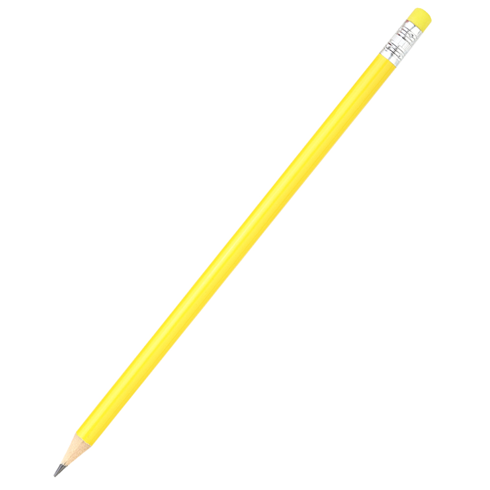 Деревянный цветной карандаш LARGO с ластиком в цвет корпуса. Цвет грифеля черный, заточенный. Дерево натуральное. Краска глянцевая.Цвет по PANTONE® (максимально приближен): 109 C (корпус).