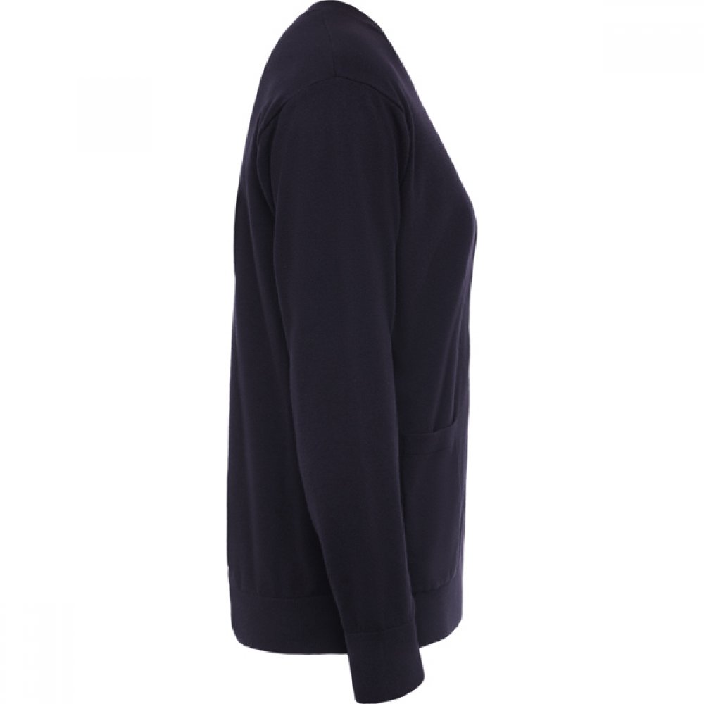 - Женский Кардиган с V·образным вырезом из мягкой стеганой ткани. Передняя застежка с пятью пуговицами. Два накладных кармана. Манжеты и эластичный пояс в рубчик.*Отрывная этикетка. *Концепция Duo.