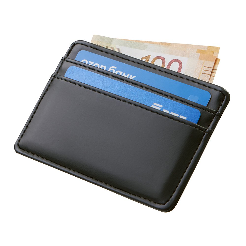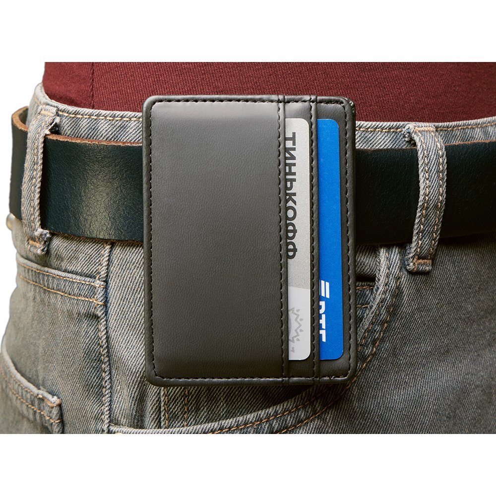 - Картхолдер — стильное и практичное решение для деловых людей. В отличие от классических кошельков и портмоне он занимает совсем немного места и с лёгкостью поместится в карман. Данная модель благодаря зажиму на обороте также удобно цепляется за ремень джинс или на ланъярд. Картхолдер вмещает две карты и имеет отделение для купюр. Чтобы ещё больше порадовать клиентов, картхолдер можно вручить не пустым, а вложив в него что-нибудь полезное, например, скидочную карту или свою визитку, чтобы ваши контакты всегда были под рукой. Строгий и лаконичный дизайн Функциональный бизнес-подарок