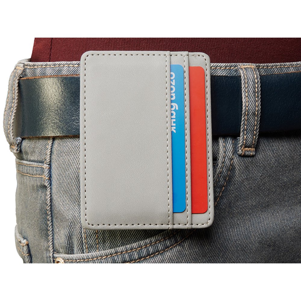 - Картхолдер — стильное и практичное решение для деловых людей. В отличие от классических кошельков и портмоне он занимает совсем немного места и с лёгкостью поместится в карман. Данная модель благодаря зажиму на обороте также удобно цепляется за ремень джинс или на ланъярд. Картхолдер вмещает две карты и имеет отделение для купюр. Чтобы ещё больше порадовать клиентов, картхолдер можно вручить не пустым, а вложив в него что-нибудь полезное, например, скидочную карту или свою визитку, чтобы ваши контакты всегда были под рукой. Строгий и лаконичный дизайн Функциональный бизнес-подарок