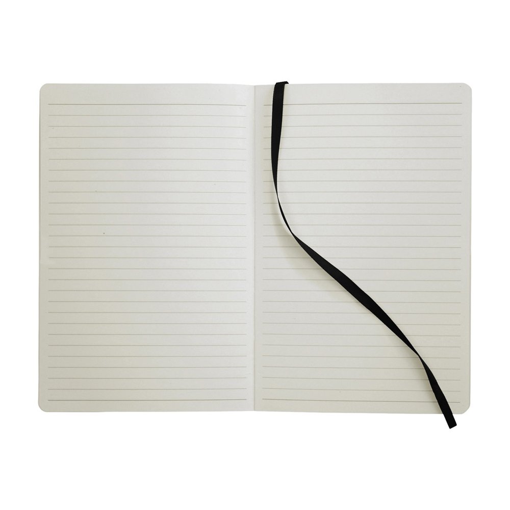 - Классический блокнот с мягкой обложкой. Блокнот с мягкой на ощупь обложкой (ориентир размер А5) с эластичной застежкой, закладкой, кармашком для заметок внутри и 80 листов линованной бумаги (80 г/м²). Термо ПУ.